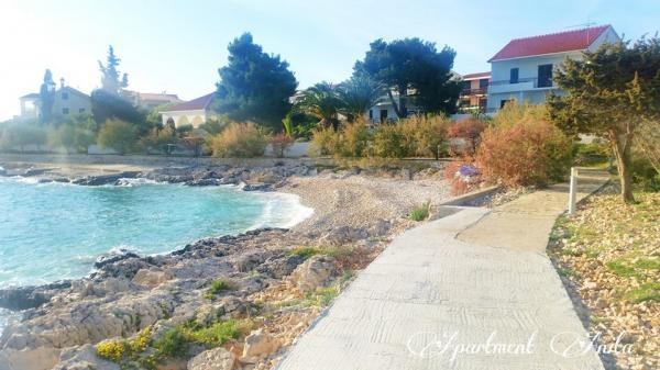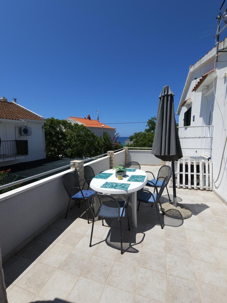 Apartment Anita is located in a quiet environment. On the first floor, you will have a beautiful sea view from all three sides of the apartment and not on the main road. The apartment area is 65 m2 and has two balconies and a terrace. The apartment has two rooms (one is a double room and the other one has two single beds), bathroom, kitchen and a comfortable living room with air conditioning and a smart satellite TV. The apartment at the entrance has a large terrace with sunshade, seating area and barbecue. The apartment has free internet. One parking space is in front of the house. The distance from the sea and the beach is 20 m and the nearest shop is 100 m. There are various beaches, from pebble to rocky and those that are concreted. The most beautiful are pebbles where you can find the natural shade of trees or if you want you can use our sunshades for the beach.