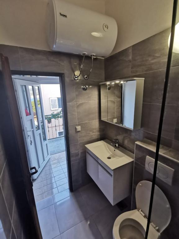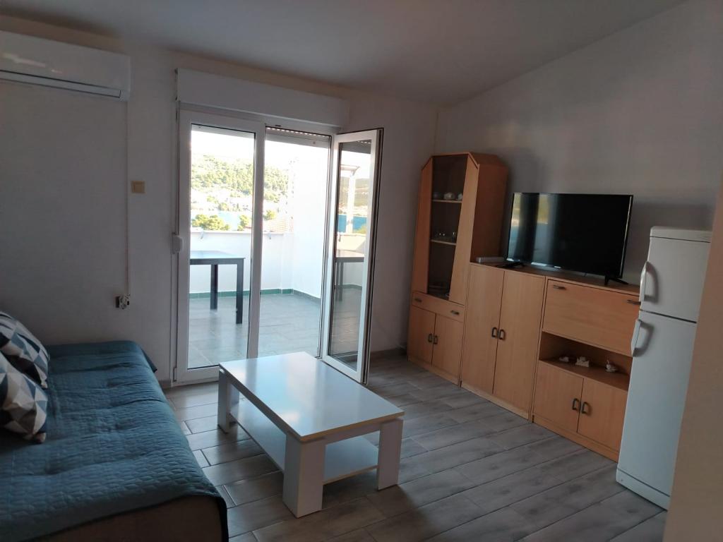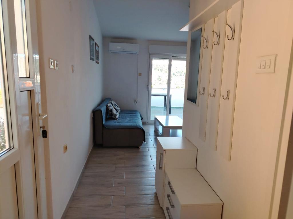 Fully furnished apartment in a quiet part of Rogoznica (part Crljina). The apartment is a bedroom for 2 persons (beds can be joined and separated), a kitchen and a living room with a sofa that can convert into a double bed, a bathroom and a terrace overlooking the sea. The house is 100 meters from the beach and 10 minutes walk from the town center.