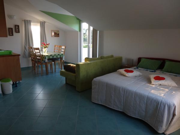 This year's stay is our 6th time in picturesque Croatia. This time Zecevo near Rogoznica and Ines apartments. Hosts very friendly, showed us all the apartments and can confirm the compliance with the description and photos on the site. Tastefully furnished apartments, clean. Kitchenettes equipped sufficiently for dinner preparation. In each apartment terrace overlooking the sea and beautiful hills extending around the house. Lots of free space around. You can walk to Rogoznica about 30 minutes. By the sea. In front of the children's home a large area with a trampoline, a swing and a small water slide. Lots of parking space. Private beach. Descent to the water on the ladder - quite deep, silence, calm - few children;) Beach for children with mild descent distant about 300-400m. I recommend for a quiet holiday looking for peace, quiet and truly idyllic holiday