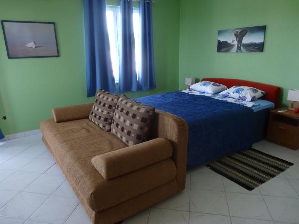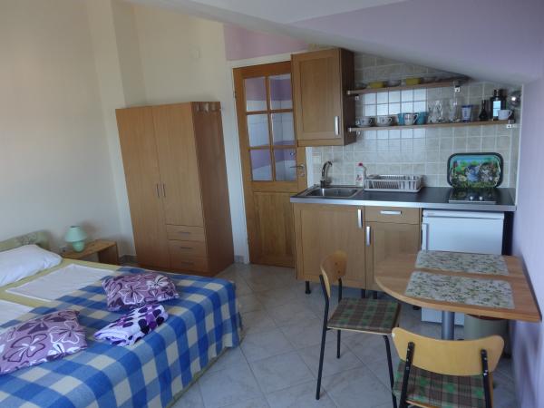 Apartments very clean, as described. Rocky beach, with descent to the ladder, but in the center is a nice beach with a gentle descent. There are bars on the beach. The place is recommended for people who like peace. Perfect for families with children. The only disadvantage of the room is that they do not have a TV, but I generally recommend it.