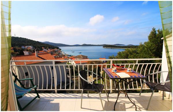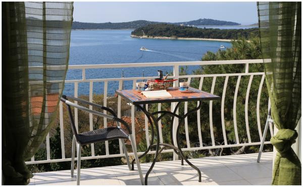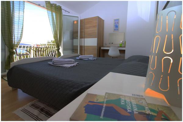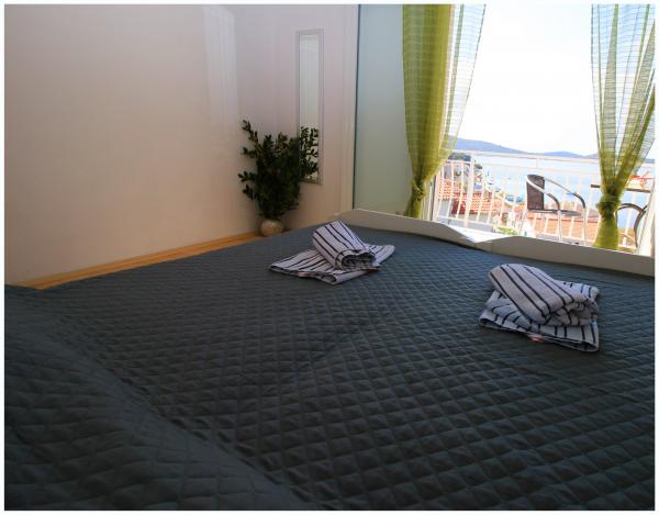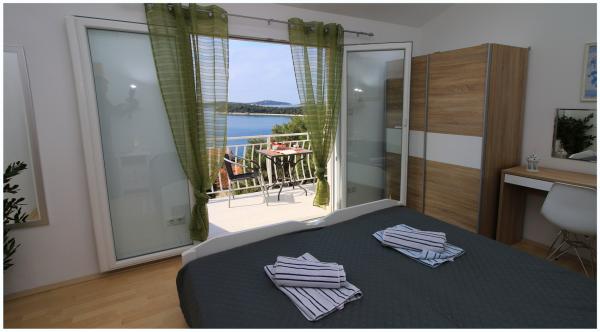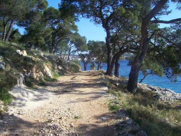 Nice apartment near the pine forest, in a quiet street, suitable for children with beautiful sea views. The beach is 5 minutes walk from the apartment. The island is connected by a short bridge to the mainland and covered 70% of the forest. Around the island, the sea is a long promenade. Nearby there are lots of fish restaurants with a rich tradition. Common trips to Krka and the Kornati islands. Tourist tax, air conditioning, internet included in the price.