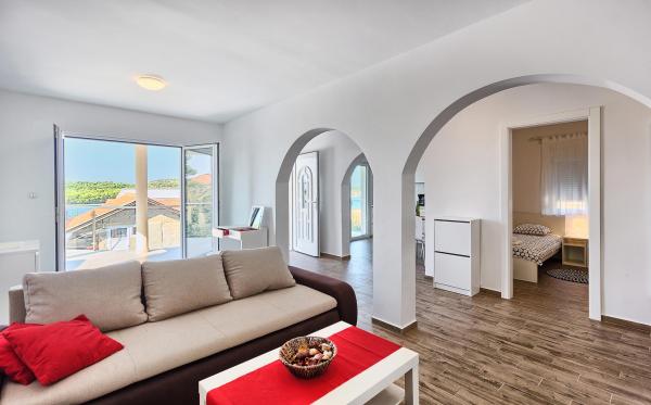 Fully and modernly furnished apartments located 200 m from the center of Rogoznica, 70 m from the sea. We offer 3 newly renovated apartments of different sizes, each of them has its own entrance, a terrace with a view of the sea, and a barbecue is also available. All apartments have televisions with satellite programs, internet and air conditioning, and the possibility of using a washing machine and an additional toilet, and the kitchen has a dishwasher. The highlighted price includes the use of air conditioning, unlimited internet, tourist tax and parking.