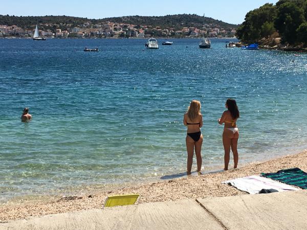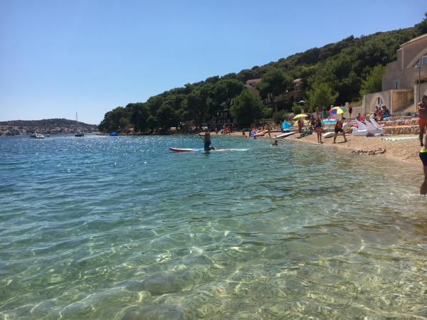 Owner very nice apartment on the 1st Stock clean, spacious, kitchen utensils sufficient. It would be ideal beach chairs and sun umbrellas for guests traveling far. Beach filled with gravel, very clean and sea urchins free! The kayaks we have offered, even beginners, enjoyed, snorkeling is also very eventful. This part of Rogoznica is heavenly quiet. In 10 minutes we reached the sea along the busier part of the island with its many bars, restaurants, taverns, supermarkets, bakeries, large vegetable and fish market, beautiful marina with disco. In 35 minutes you go to Trogir and Split about 50 minutes-and the cultural offer is accessible afloat. We'll be back no doubt! Note 1: Atrium restaurant - with delicious Dalmatian cuisine and Note 1: Lantern Tavern, both were flavorful and priced favorite in our cooking / to Rogoznica. This island can recommend all want to enjoy the peace and tranquility on vacation.