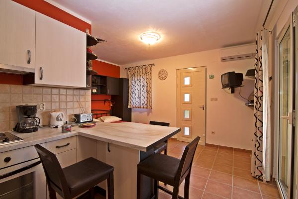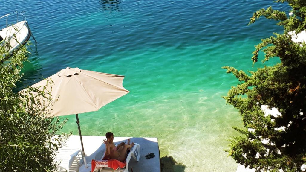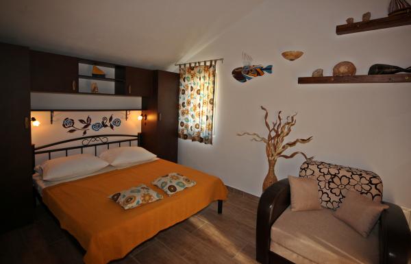 Here it is that you're looking for. Kind, gostoljubni landlords who are willing to help in vsaka situaciji.Studio is equipped with all the necessary things that you need at the annual (large refrigerator, sink, microwave, air conditioning, TV, large bathroom, etc..). Outside, a large terrace and sea at hand. Really beach is two steps from the terrace. Super is a private beach (very clean and clear water). I recommend to anyone who wants a peaceful and relaxing holiday. The beach is great for kids because they can play in the sand, searching the shore and the sea, or jump off the pier. We defenitivno returns next year.