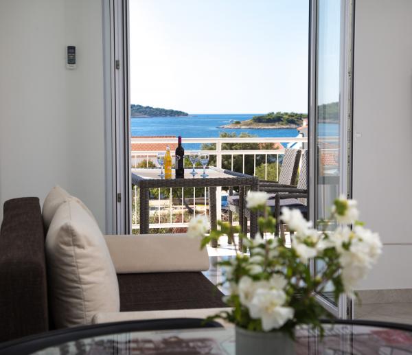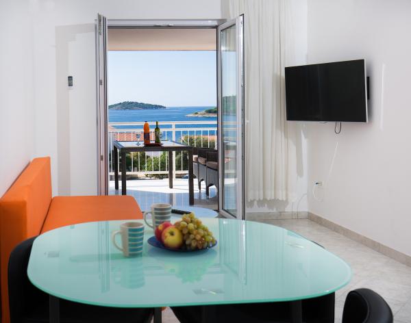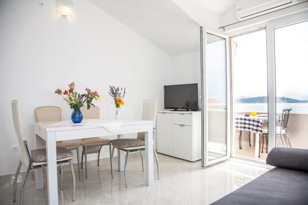 Beautiful apartment, the house is located in a beautiful place near the sea so you can hear the sound of the waves in the evening! The apartment is nicely equipped with all the above, beautiful balcony with even more beautiful view! Ms. Iva a wonderful housewife !!