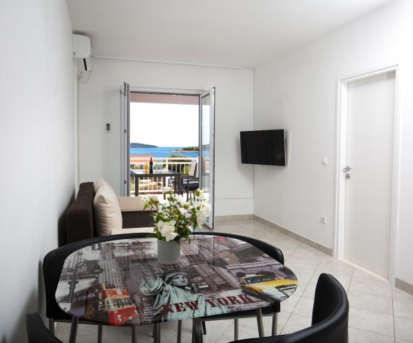 A comfortable apartment for 4-6 people with a beautiful view of the sea from the balcony. You'll find everything you need (including a TV with internet connection, microwave, vacuum cleaner and washing machine on request) Friendly and helpful, hostess. A comfortable and modern terrace. It was the best apartment we have lived in so far in Croatia - and this was our twelfth time. At a really good price. I honestly recommend!