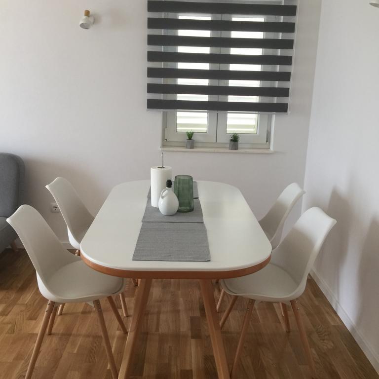 I would like to share my opinion on our stay in the Janja apartment in Rogoźnica. I have had the opportunity to visit this place twice, and both times have been very pleased. During the whole holiday, we could count on the help of a very nice hostess, who made every effort to ensure that we did not miss anything and additionally won the sympathy of our children with small sweets. But even without that, the children liked her very much. The house is very neat and well-kept, finished in a modern style, the kitchen is adequately equipped - although there may not be enough space for people who want to fulfill the role of a Mediterranean cook. Bathroom small but acceptable. The house is situated close to the sea, in a very quiet area. From the terrace there is a beautiful view of the sea and it is actually a view of the sea, not just a piece of the sea emerging from somewhere behind a row of houses. It should be noted that the house is in the second row from the sea - it is separated by the only row of exclusive villas directly on the sea front, which do not disturb the atmosphere of the place. The nearest beach is a 5-minute walk away. The area around the building is very intimate. It is not an estate of holiday houses, but rather a residential area. I think it is a perfect place for people looking for a quiet place away from the hustle and bustle of the city, giving the opportunity to take advantage of warm evenings or brisk mornings on the terrace with picturesque views. I highly recommend this place.