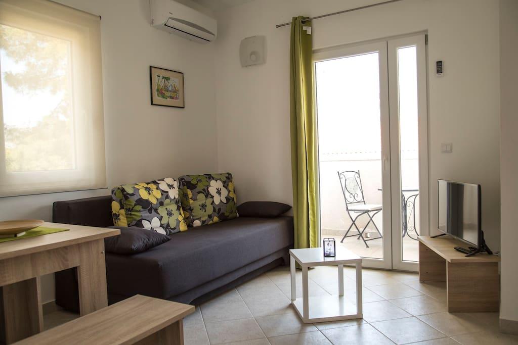 The reservation of the apartment was made after a previous conversation with the owner and was paid after the same down payment of HRK 1,000. When we arrived at the apartment, we were convinced that everything was not exactly as shown in the photos. The apartment is advertised as A4. To anyone reasonable, this would mean that there are four beds. In the ad, there are two photos that give the impression that there are two bedrooms with two beds each. However, it is the same room only with two different bedding. So where to put two more people? On that extra bed? How is it possible that someone advertises as A4, and does not have the basic conditions for that? That's why I won't go on and write about the fact that my original question was whether the apartment is available for a disabled person? Of course, if we had to give up the accommodation on the spot and buy another one... the advance payment was not returned!!