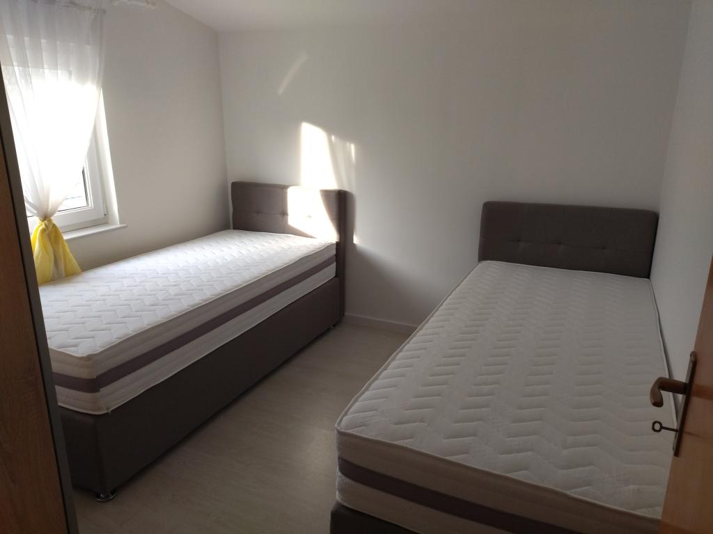 This holiday home was for our family of 5 persons like a dream. The place was new and clean, hosts were friendly. We had enough room for everyone. We enjoyed the magnificent view from balcony over the sea. The apartment is located up the hill in a quiet place. Bars, restaurants and shops are in a walking distance (30 minutes). The most important - sea is with clean water and warm.