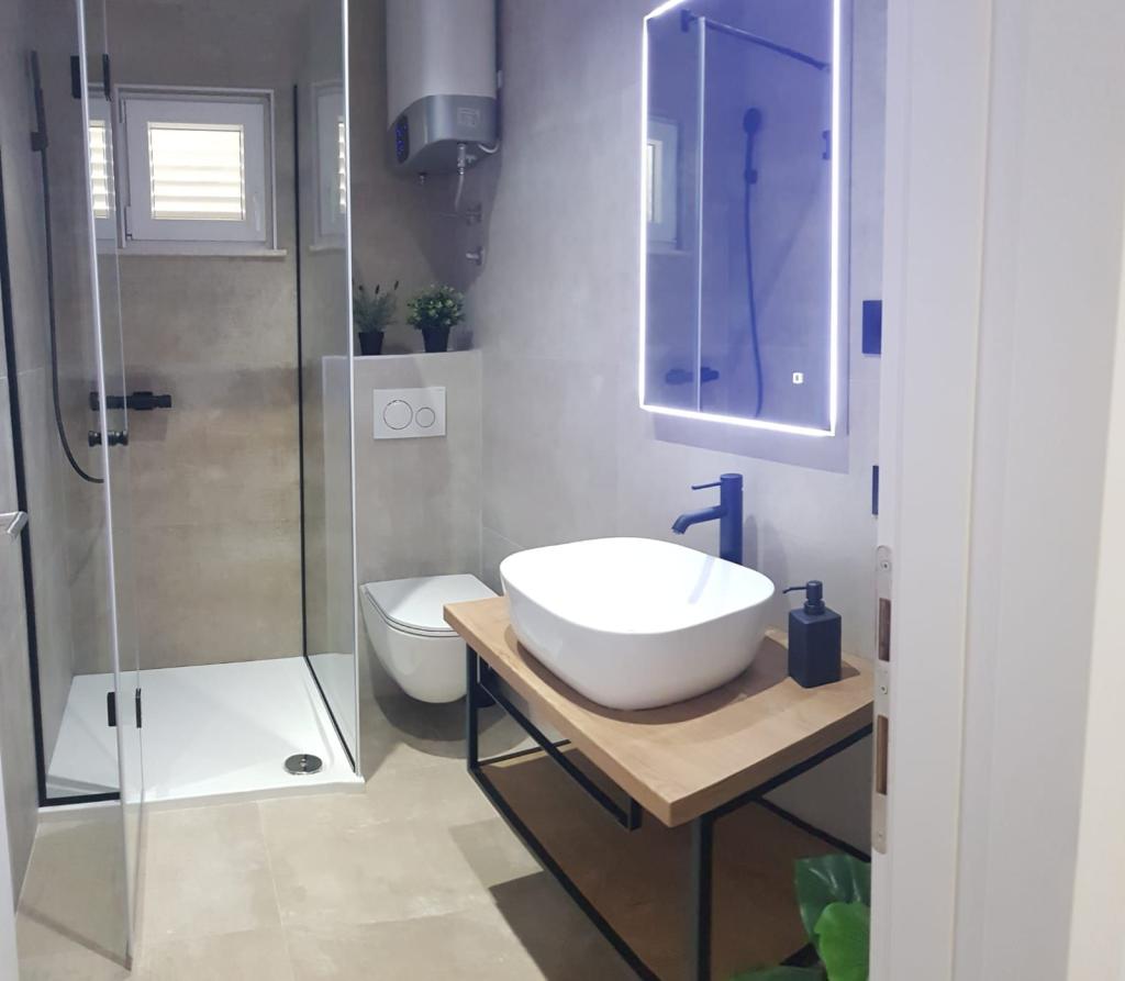 Residential tax is included in price.The host is waiting for you in the house, and in the apartment there is a welcome drink and juice or fruit. Each apartment has a parking space in front of the house, an outdoor shower. There is always one of the hosts to provide you with the necessary information. Come and enjoy the heart of Dalmatia.