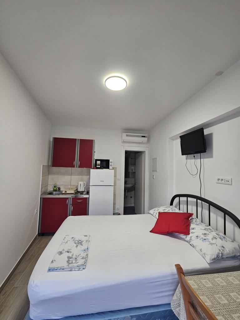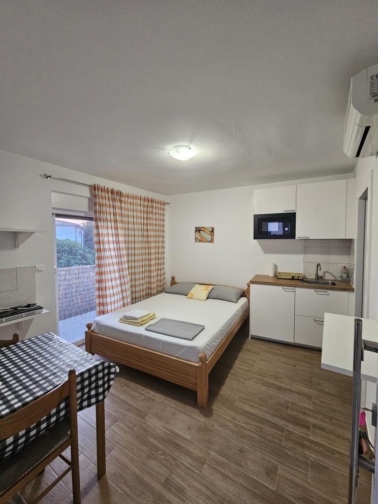 The apartment, although small, is full of positive energy and very close to the beach. Everything is clean and tidy, the refrigerator is great, the bathroom is beautiful. There is good air circulation so there is no constant need for air conditioning. The hosts are very kind and unobtrusive, always at your service. We had a great rest and I hope we will return next year.