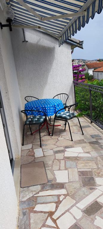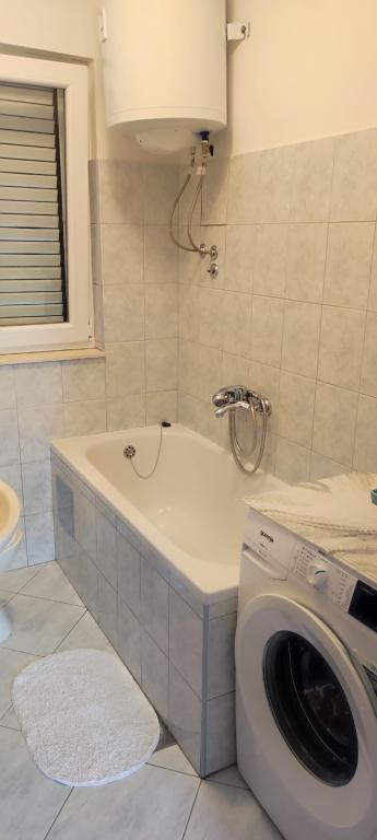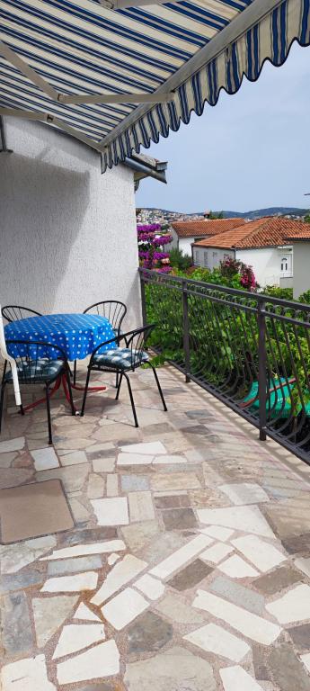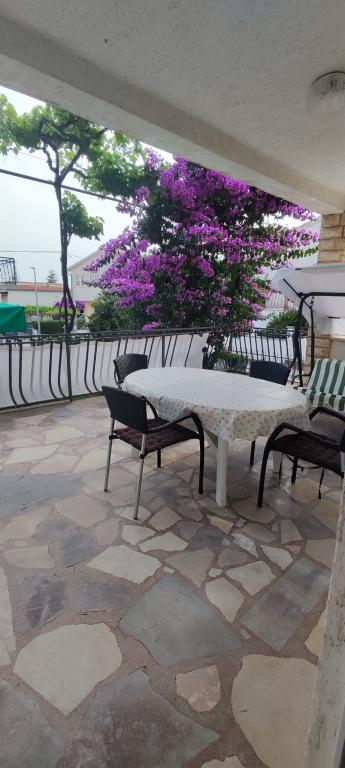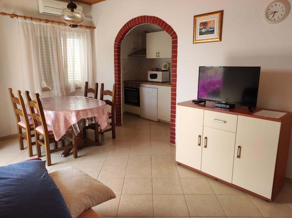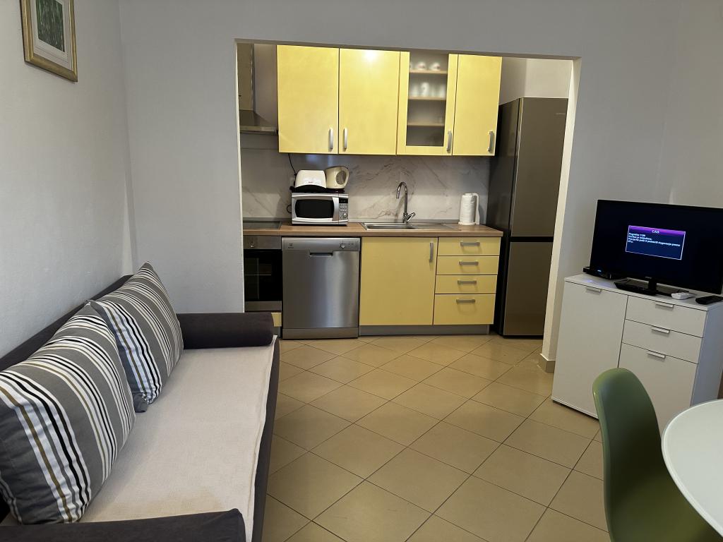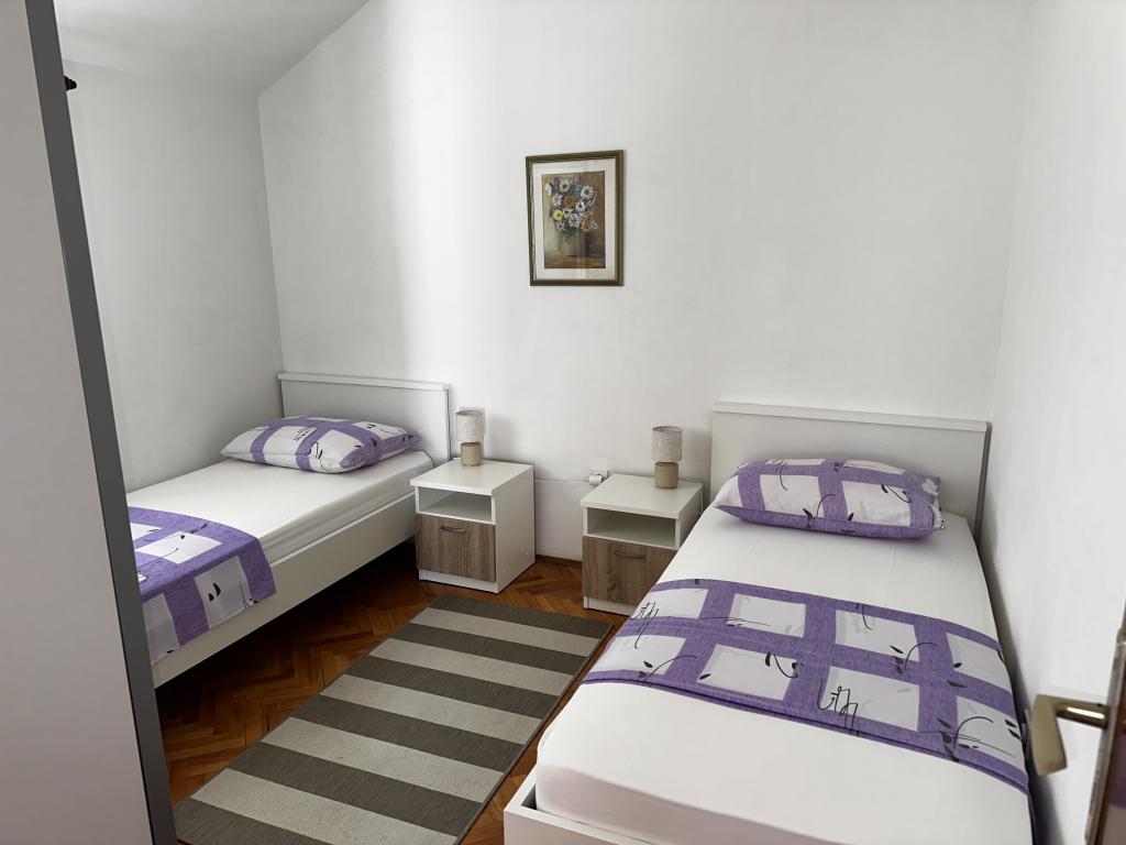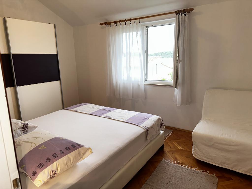 The apartment is located in a house with three apartments in the immediate vicinity of the sea in a quiet environment of family houses. In the yard of the house there is a secured parking space for guests, and the apartments are surrounded by a garden with planted Mediterranean plants. Both apartments have two bedrooms, bathroom, living room with kitchen and large balconies. The apartment on the ground floor has a balcony of approx. 30 m2, and the apartment on the first floor is 15 m2 with a view of the nearby islands. The kitchen is equipped with all necessary equipment: refrigerator, oven, stove, microwave, water heater and all other kitchen appliances. Guests can also use the grill in the yard of the house. Wi-Fi Internet is available in the apartments. The apartments are equipped with air conditioning.