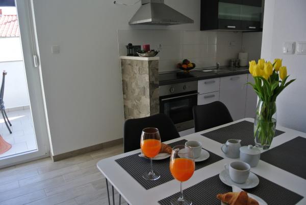 Apartments Mistral are new fully furnished apartments located 10 meters from the sea in a quiet and quiet bay Lozica, away from the main roads, noise and crowds, We have two modernly equipped apartments located on the floor of a family house. Both apartments have beautiful terraces overlooking the sea. For our guests there is free parking, internet, outdoor shower and possibility of anchorage for the boat (up to 5 m). Close to 10-15 meters from the apartment there are pebble, rocky and potted beaches suitable for swimming and sunbathing Long promenade is a long promenade for long evening walks. In the surrounding area you will find marked, well-organized cycling trails. Welcome!