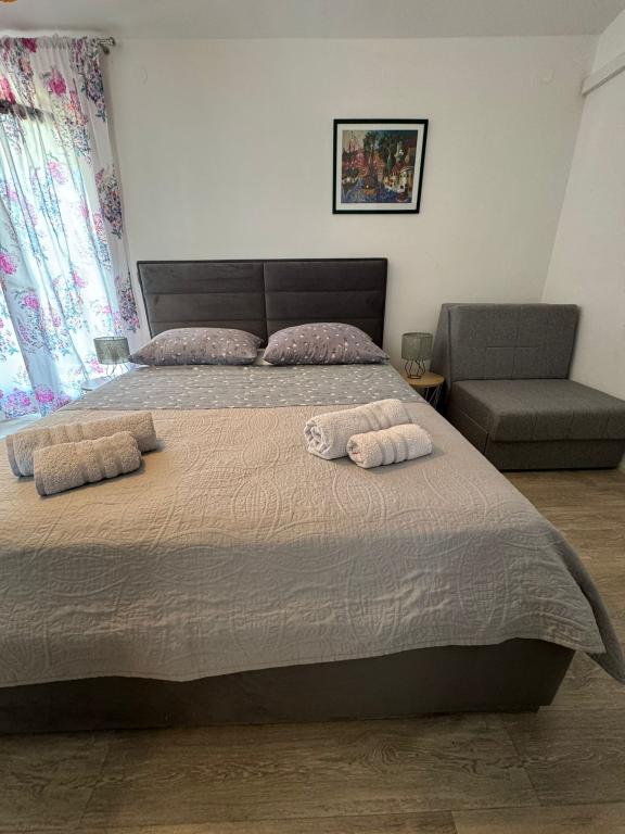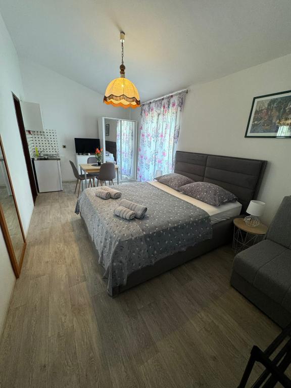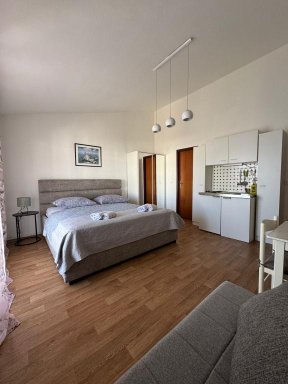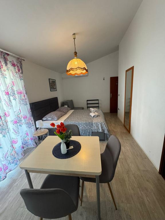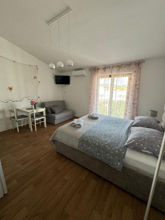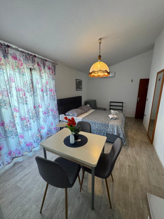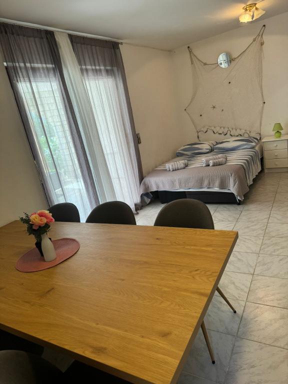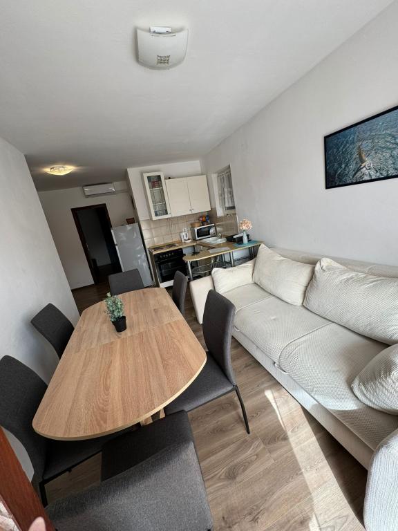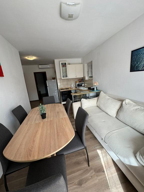 A beautiful and cozy apartment, with a large terrace, the beach literally a few steps away, and most importantly a bar for us, who have dogs, there is a beach just for dogs, right nearby, which is a big plus. Great recommendations for this apartment and we will definitely see you again.