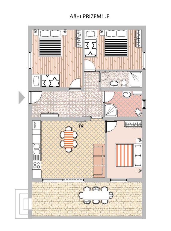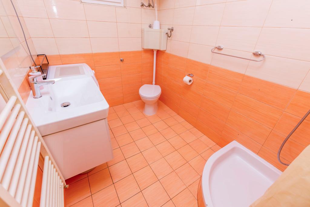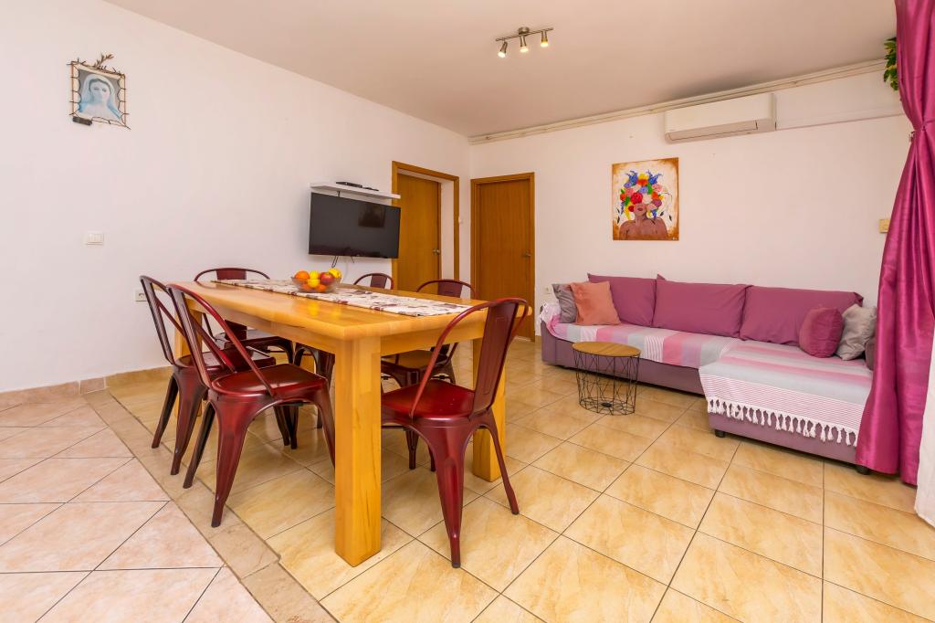 Furnished apartments with 3 stars. Apartment A- 8 1, ground floor, suitable for wheel chair., large terrace, 3 air conditioners, 2 toilets, , beach, 40 m away, suitable for children, large garden, barbecue, outdoor shower, parking protected from the sun. Beautiful promenade along the sea, from the apartment to the center (about 2000m). . Pets by arrangement. For our tourists we operate a transfer airport Split - Rogoznica. Furnished bicycle paths, about 100 km. Peace, quiet, mild climate, sun, walk by the sea, rest for the soul and body. Dear friends, we are the closest warm sea, welcome to us! Apartment A9, 1st floor, large balcony, beautiful sea view, 2 smaller balconies, 3 air conditioners, 3 toilets, grill, parking. Welcome to us!