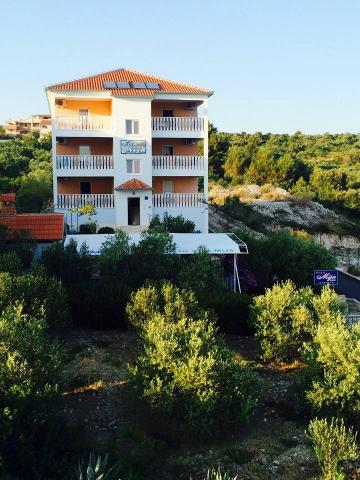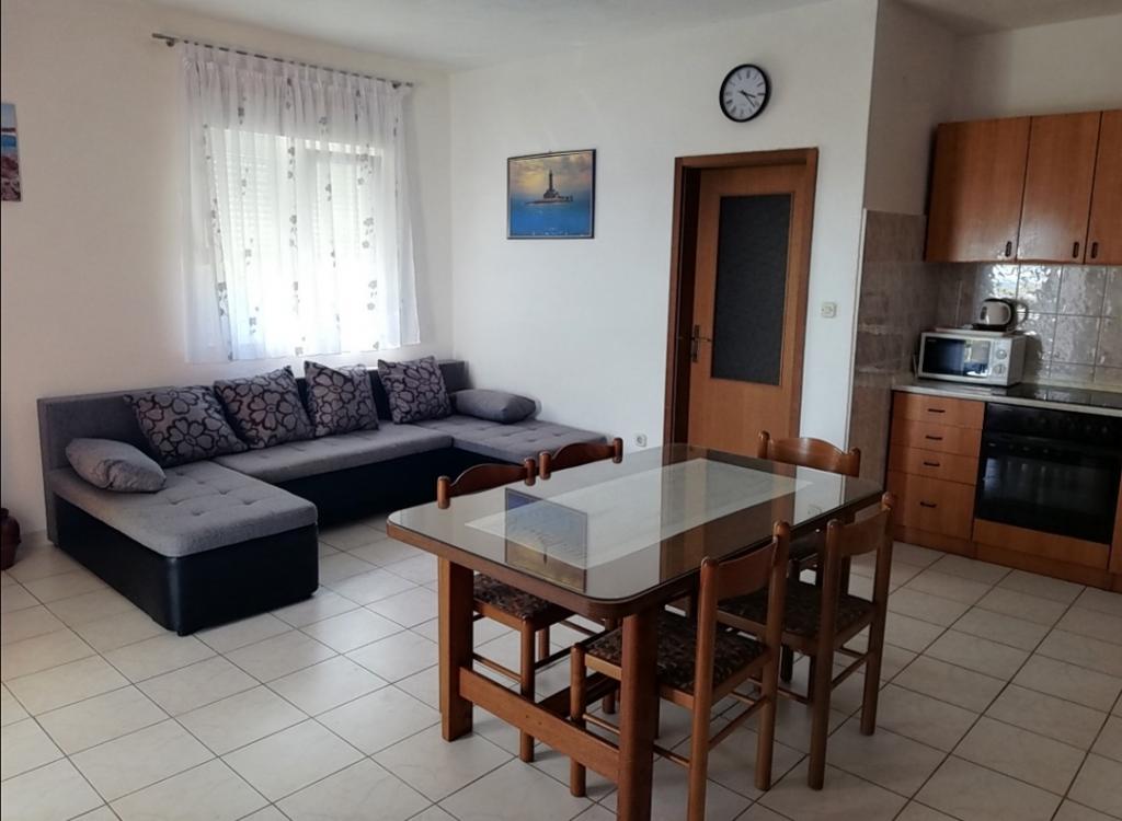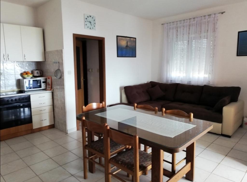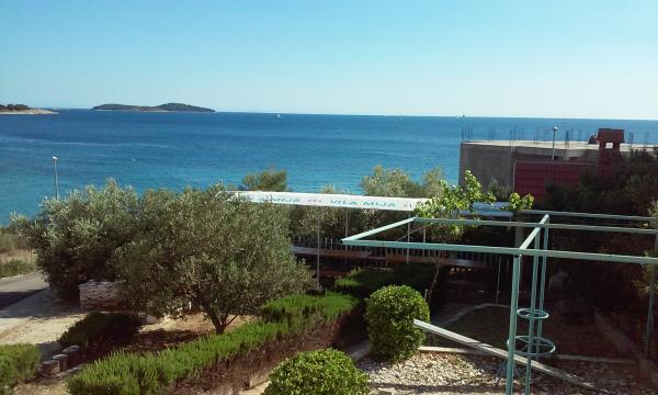 Vila Mija apartments are located in a small quiet place Zečevo Rogozničko, located between the bigger places of Rogoznica and Primošten. The place is ideal for relaxing and peaceful holidays without stress and crowds. The summers are sunny and extremely hot. The warm and sunny weather starts in May. The beach is only 50m away. Apartments are spacious. The surface of the apartment is 80m2, of which 15m2 is left on the balcony with a beautiful view of the sea and the nearby islands. The apartments consist of two bedrooms, a kitchen with a dining room, a bathroom and a balcony with beautiful sea views. One bedroom has a double bed and the other bedroom has four beds. In the living room there is a stretching couch. The kitchen is fully equipped with the necessary dishes. In front of the villa there is a playground for children and a grill place. Behind the villa is a spacious parking lot.