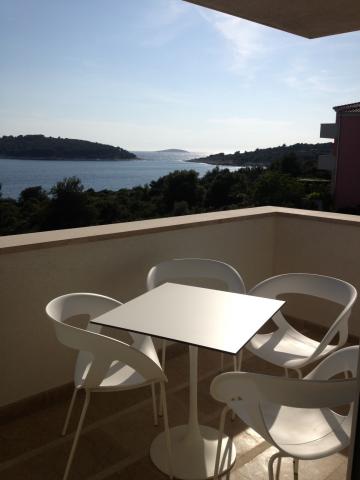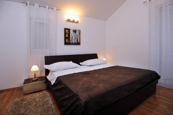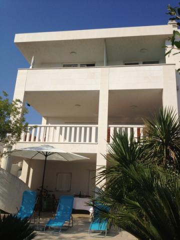 Completely modern and luxuriously equipped apartments categorized with high 4 in the quiet part of Zečeva Rogoznica for those who want a peaceful vacation. Nearby is a spa center, restaurant and bar. Luxury apartments are located 60 m from the beach which is partly gravel and part paved with characteristic Benkovac stone. The apartments consist of 2 bedrooms with double beds and large closets, 2 bathrooms with a washing machine, fully equipped kitchen with dishwasher, microwave A (b) or oven A (a), fridge and partly freezer, daily living area a dining table with 6 chairs, a sofa bed suitable for two people sleeping, plasma TV, terrace with table and 4 chairs, and offers a magnificent view of the sea, islands and a lighthouse in the distance. In front of Villa Marin is a beautiful large garden with grass, palm trees, olive trees ... and around the house is a stone garden. We offer our guests sun loungers and parasols on the beach