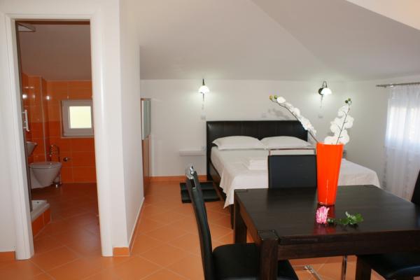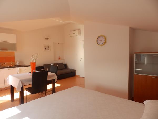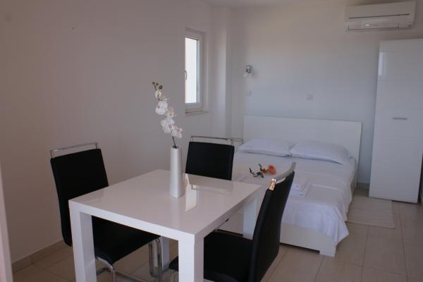 Villa Rosina is located in the peaceful bay of Zečevo Rogozničko, situated between the small fishermen's villages of Rogoznica (2 km) and Primošten (6 km). Only 30 km away from Trogir airport. All those who want to choose a quiet holiday and clear sea will come to Zecevo Rogozničko. Newly furnished apartments are located 70 meters from the beach. All apartments are air-conditioned and have terraces and sea-view rooms. Two-bedroom apartment A4 2 (a) has two bedrooms furnished with double beds, 2 bathrooms, equipped kitchen with microwave and fridge, In the living room there are two sofa beds (160 cm). The apartment has two terraces overlooking the sea. Two bedroom A4 2 (b) has two bedrooms with double beds, 2 bathrooms, in the living room a sofa bed 160 cm, and two terraces. A2 1 has a bedroom with a double bed, an extra bed (160 cm for 1-2 persons) in the living room. Studio apartments have a double bed and sofa bed (160 cm). A2 2 has two single rooms and a double bed in the living room