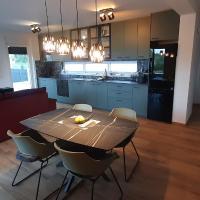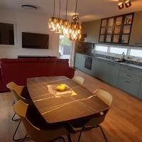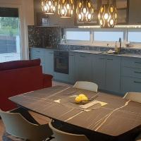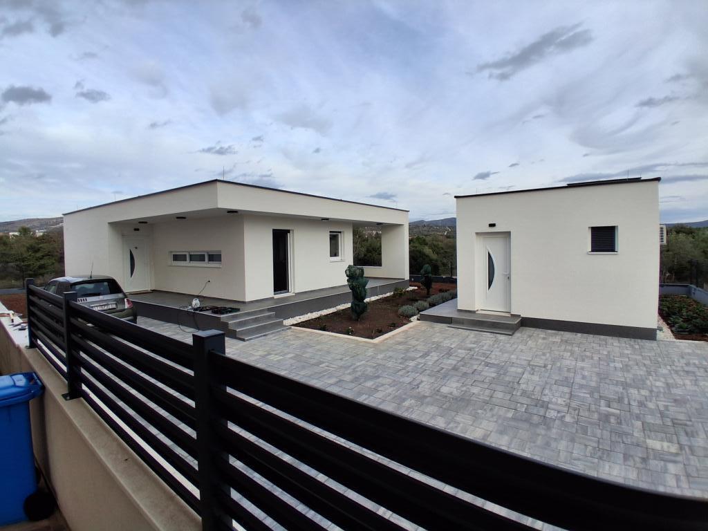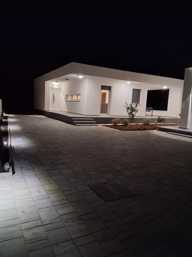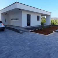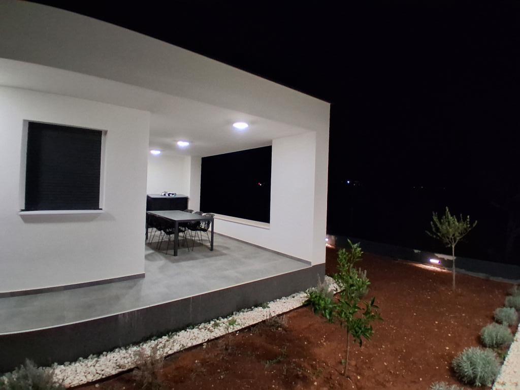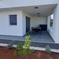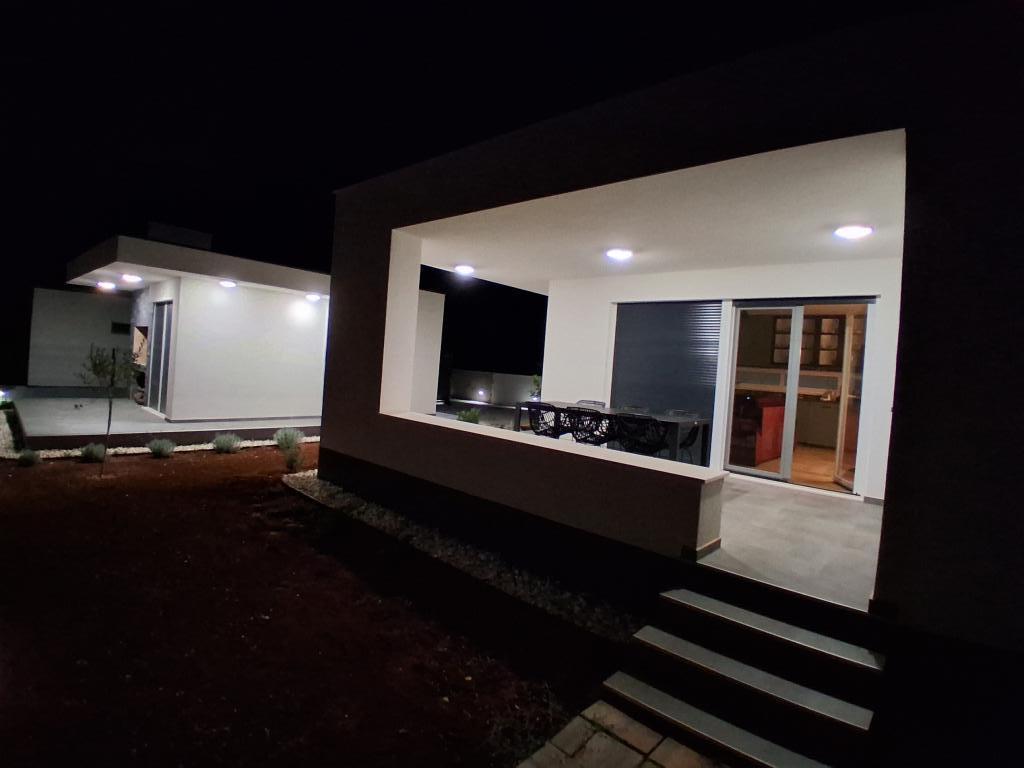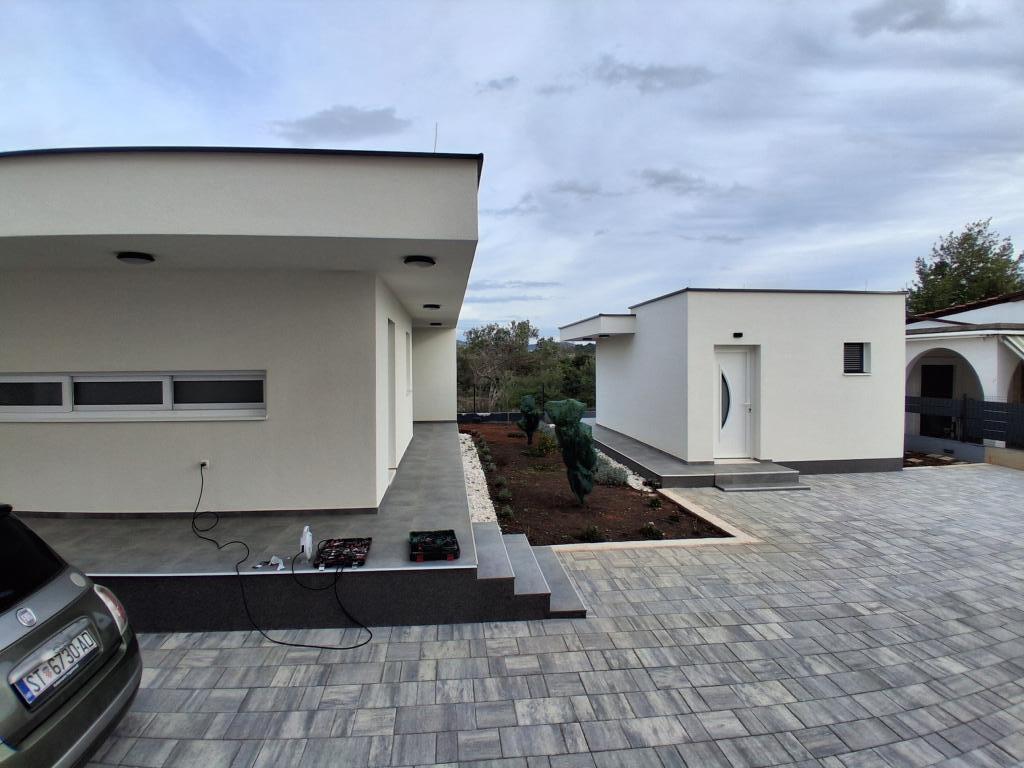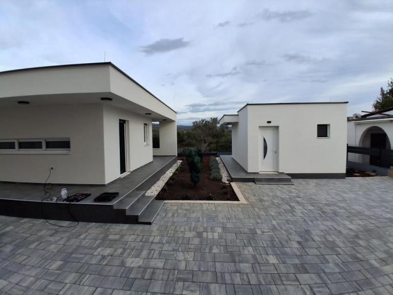 New single-storey house with a living area of 70 square meters with a covered terrace of 30 square meters is located in a quiet location away from the road with a view of the olive grove. The spacious terrace is protected from the view of neighboring houses and guarantees privacy. The beach is within walking distance, a few minutes from the property. Private parking is provided for three cars. It has two air-conditioned bedrooms (1. large double bed, 2. two single beds), a spacious air-conditioned living room with kitchen and dining room, a large bathroom with toilet. The house is equipped with all new furniture and appliances, smart TV, terrace with a large table for 6 people.