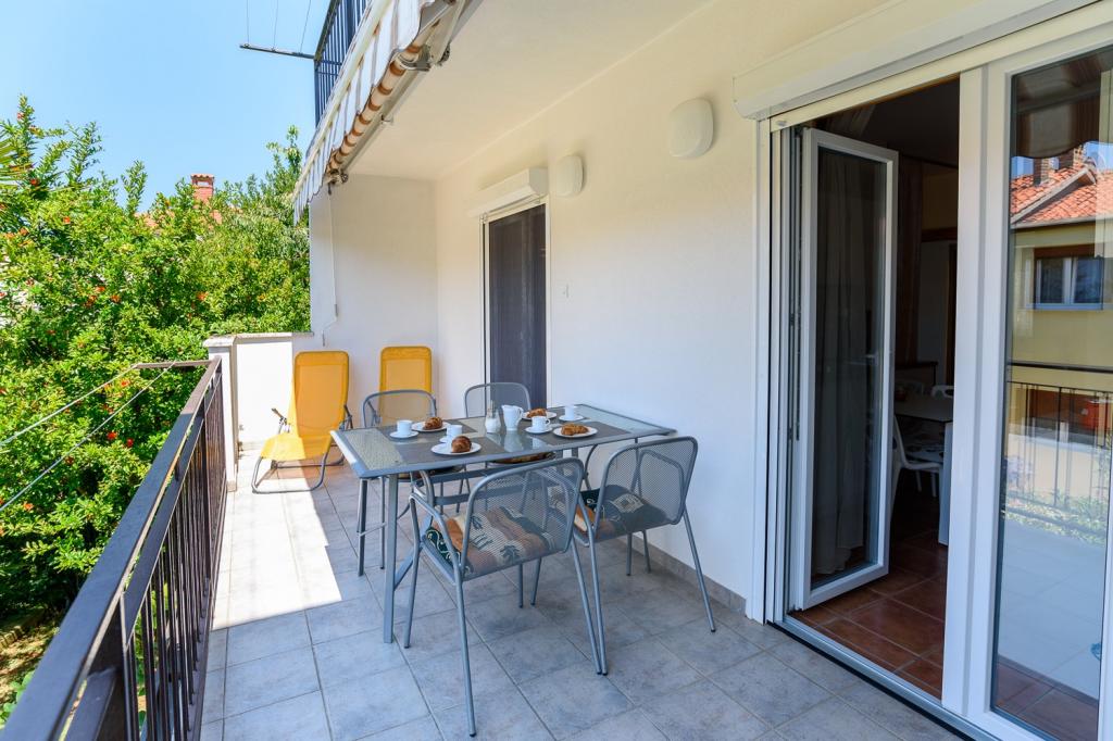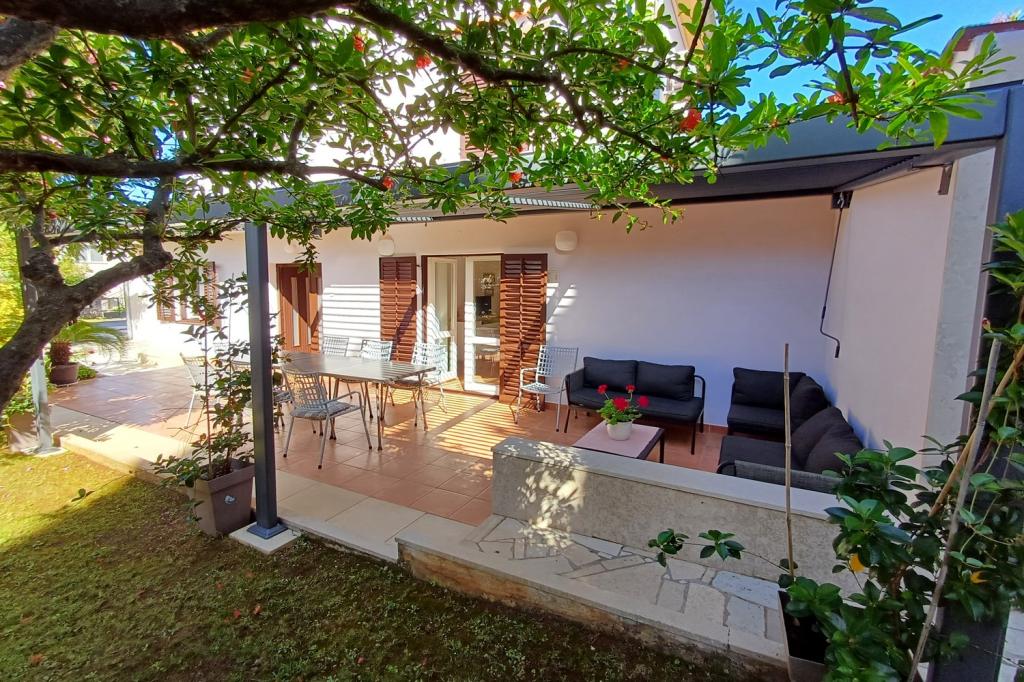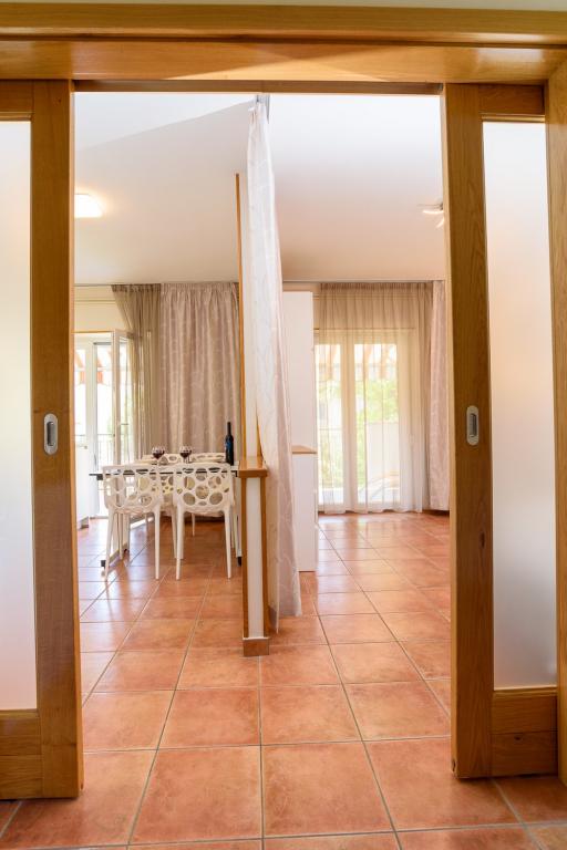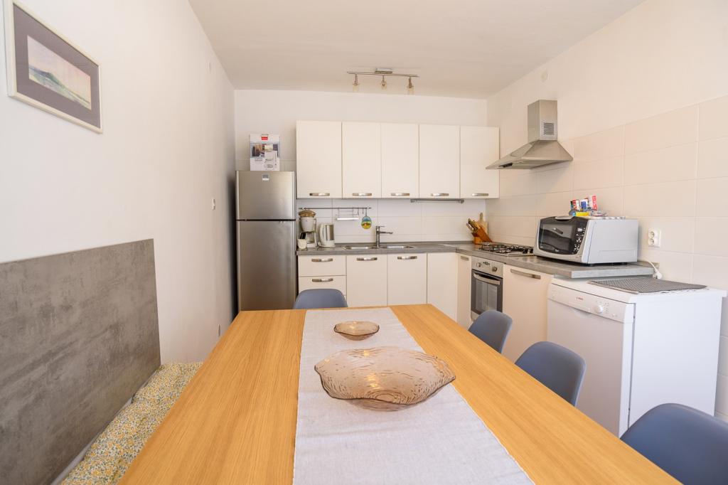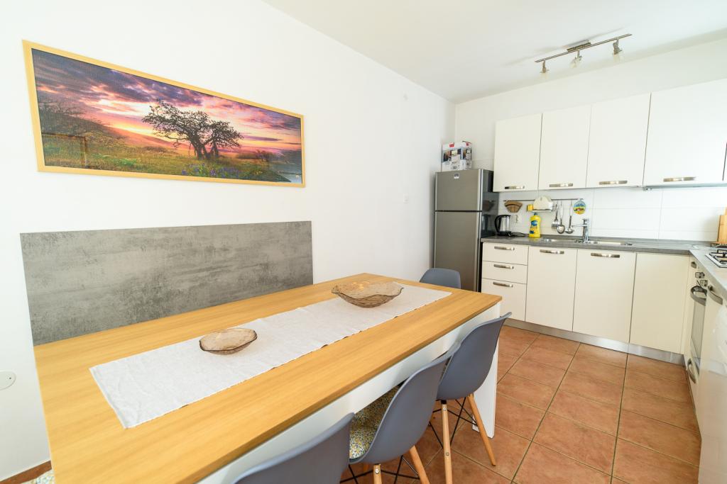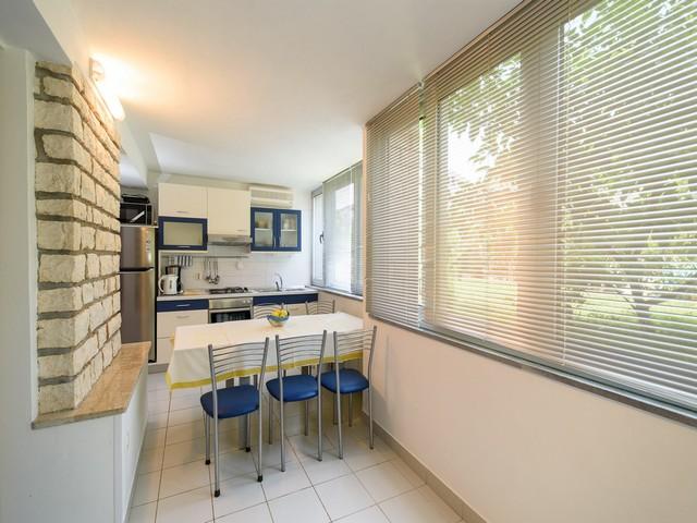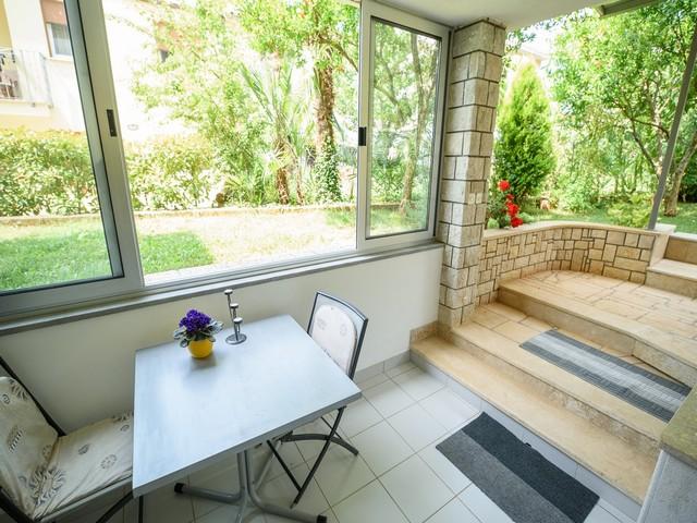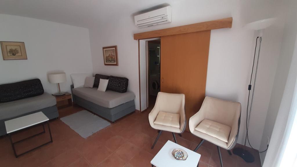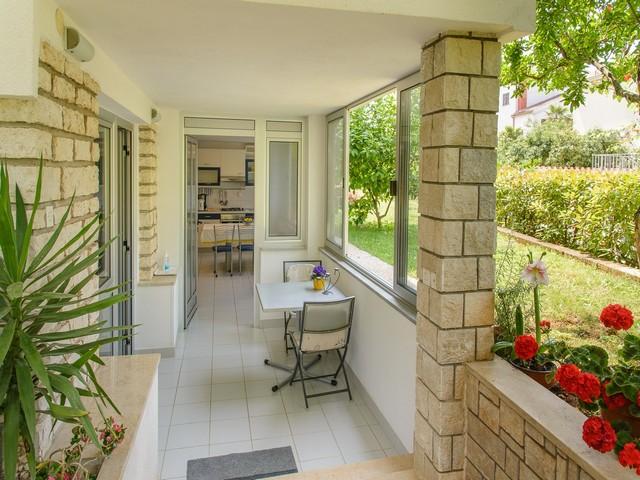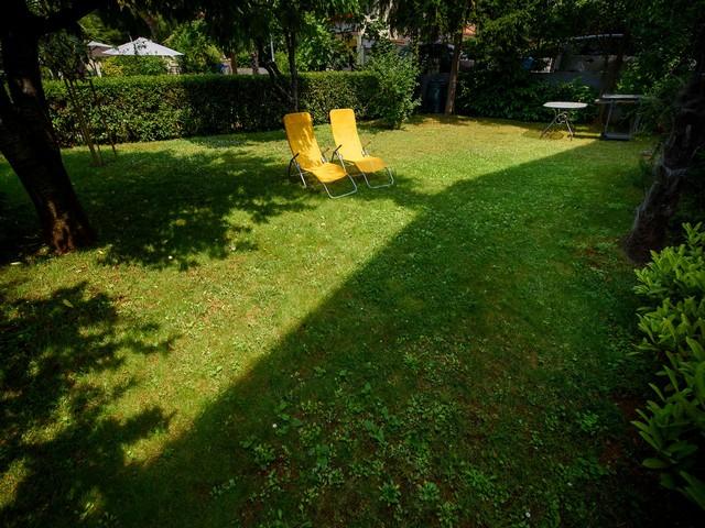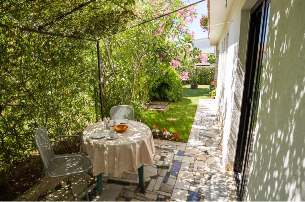 We spent a one-week family vacation in Ines' beautiful apartment. The apartment is partially underground, so on hot days it was not that hot inside, even though they have a working air conditioner. The apartment is exactly as in the pictures, with a large green terrace in partial shade, which was very convenient for our child. At first, we were missing some games on the terrace, but we soon realized that there were enough other games in the vicinity. It is a 10-15 minute walk to the beach, the street is quiet, and the owner is very friendly and fair. The kitchen also has enough utensils for personal cooking. We felt good in the apartment and recommend it to families.