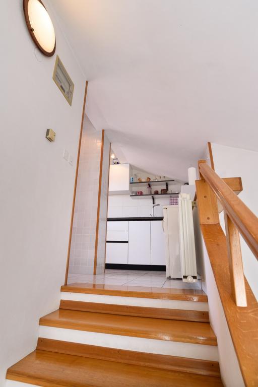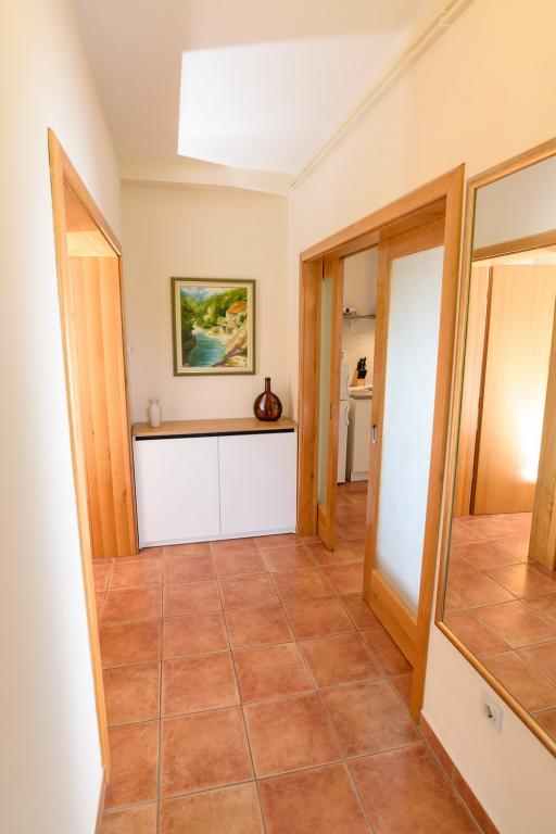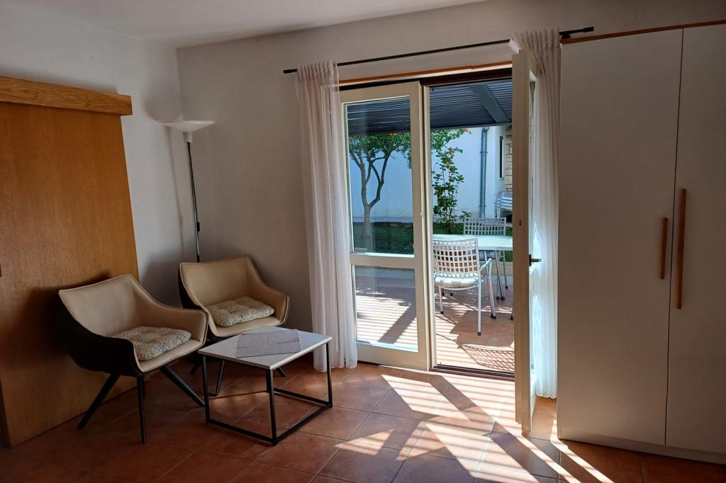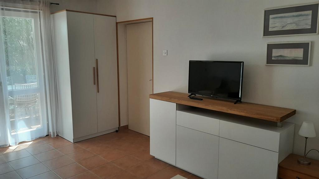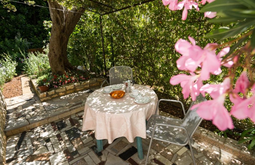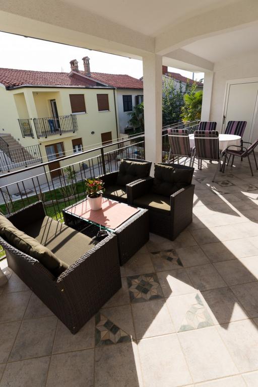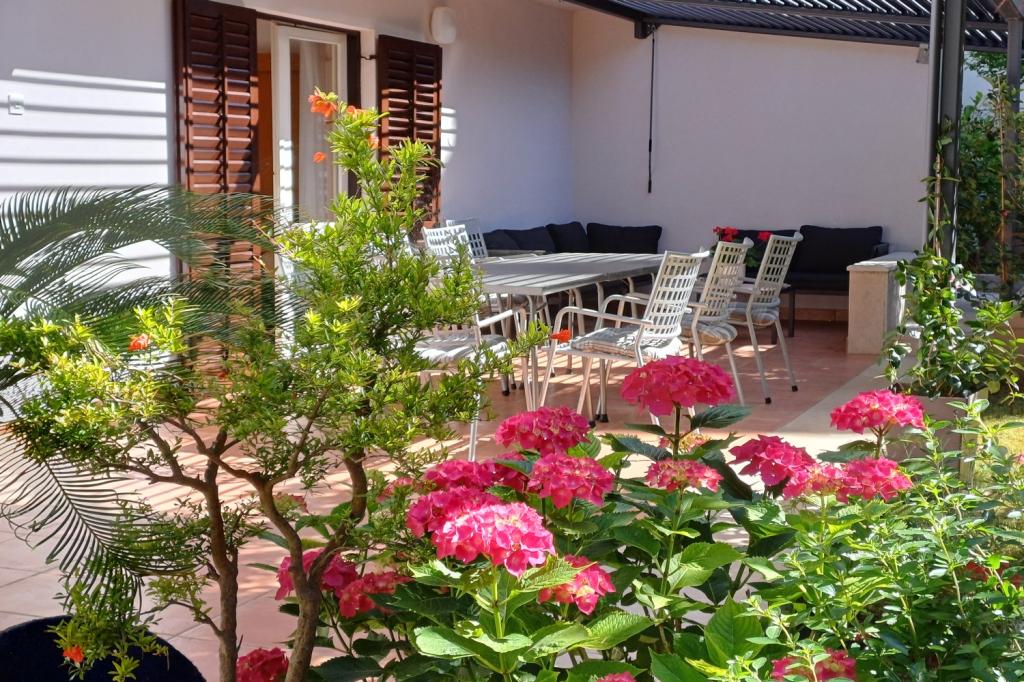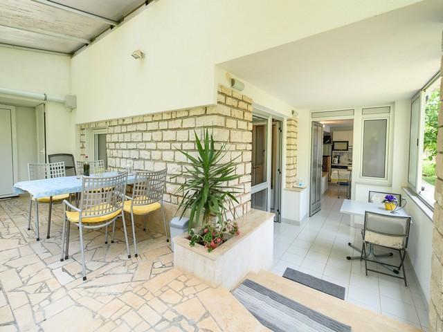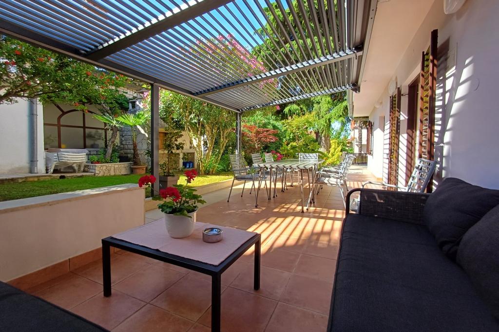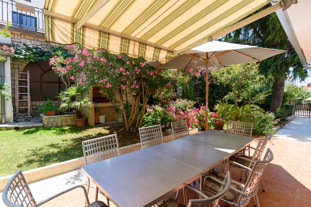 We spent a one-week family vacation in Ines' beautiful apartment. The apartment is partially underground, so on hot days it was not that hot inside, even though they have a working air conditioner. The apartment is exactly as in the pictures, with a large green terrace in partial shade, which was very convenient for our child. At first, we were missing some games on the terrace, but we soon realized that there were enough other games in the vicinity. It is a 10-15 minute walk to the beach, the street is quiet, and the owner is very friendly and fair. The kitchen also has enough utensils for personal cooking. We felt good in the apartment and recommend it to families.