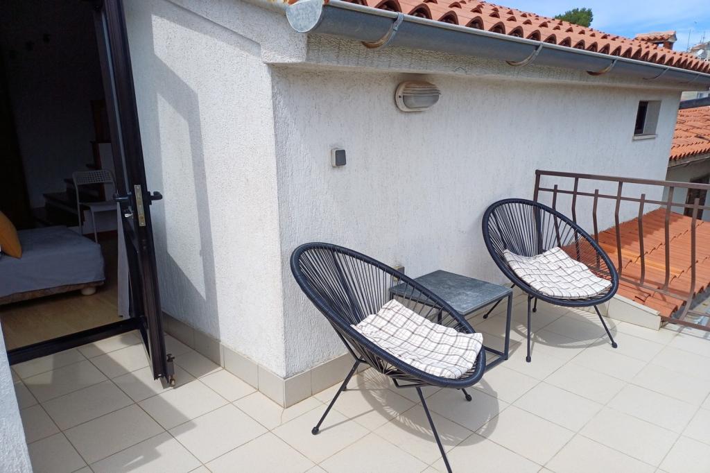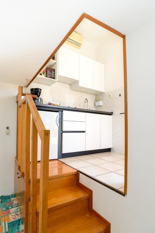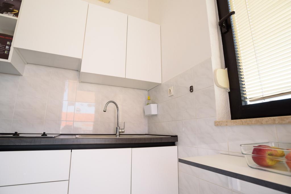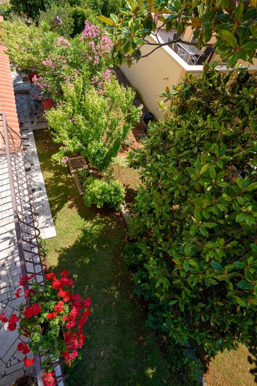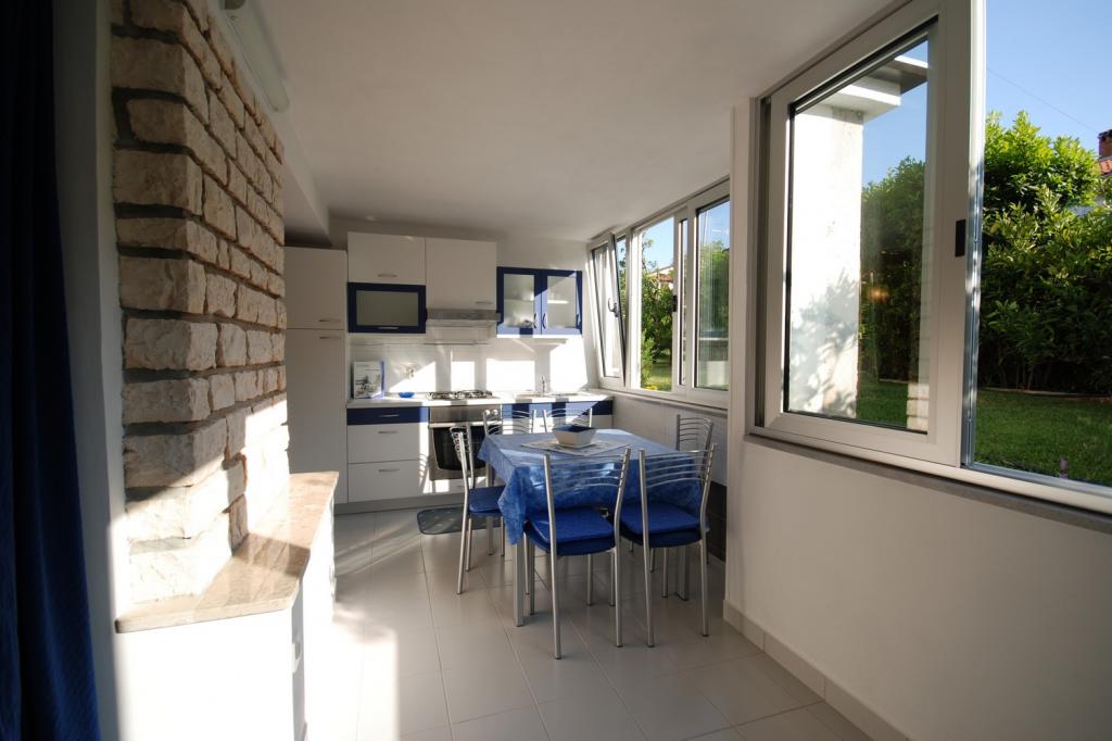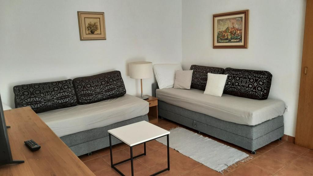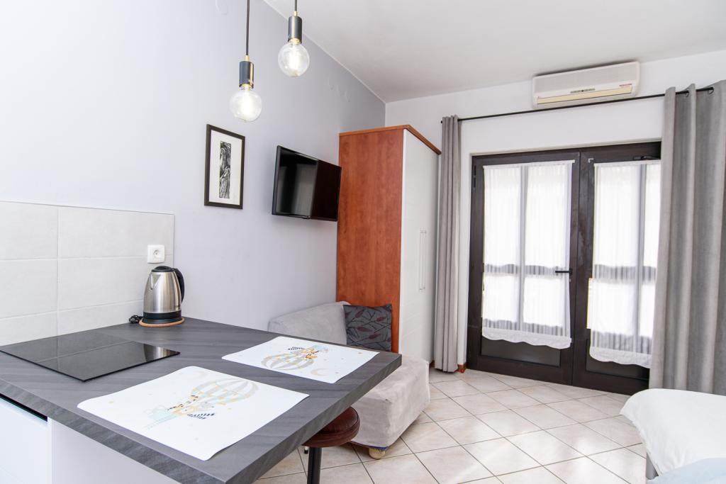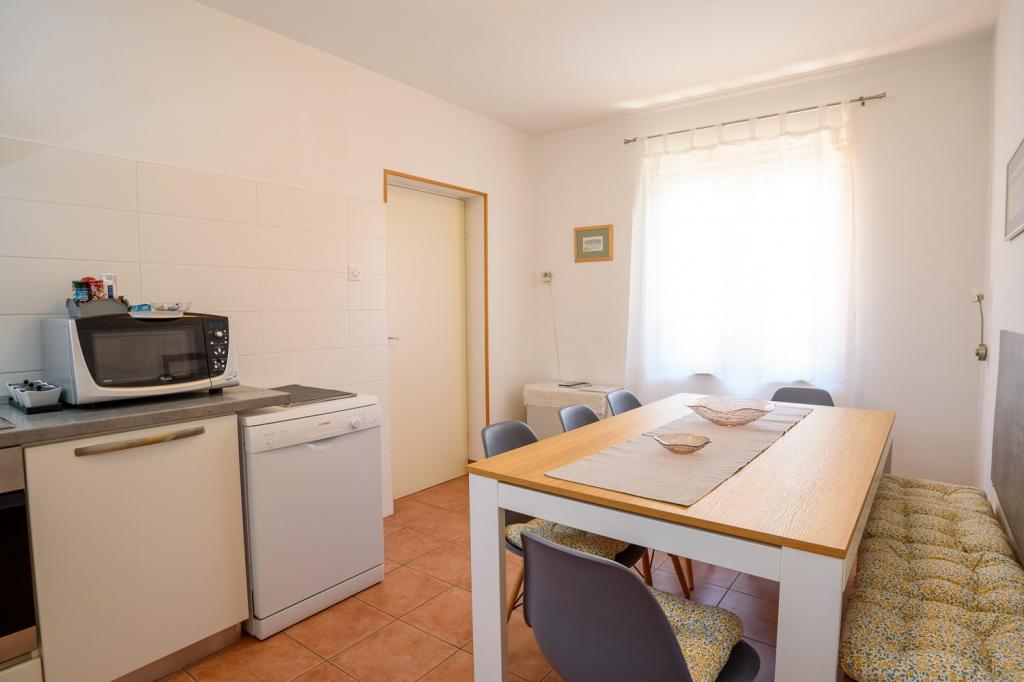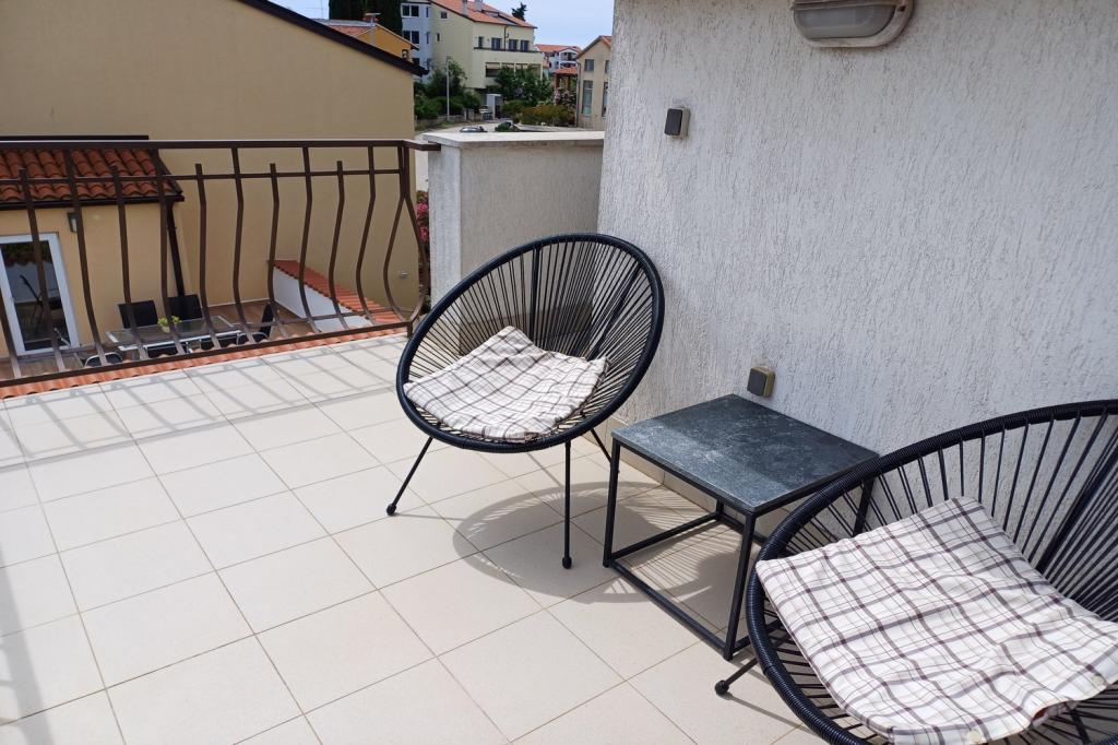 We spent a one-week family vacation in Ines' beautiful apartment. The apartment is partially underground, so on hot days it was not that hot inside, even though they have a working air conditioner. The apartment is exactly as in the pictures, with a large green terrace in partial shade, which was very convenient for our child. At first, we were missing some games on the terrace, but we soon realized that there were enough other games in the vicinity. It is a 10-15 minute walk to the beach, the street is quiet, and the owner is very friendly and fair. The kitchen also has enough utensils for personal cooking. We felt good in the apartment and recommend it to families.