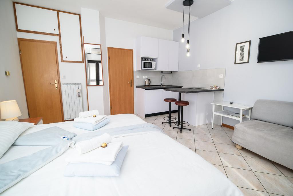 WHAT YOU CAN GET WITH US: FREE: Welcome drink, Grill, Parking, Garage for your bicycles, Deck chairs for terraces and garden, City map, brochures, leaflets, Organization of excursions according to the guest's needs, Reservation of dinner in a restaurant, Information about various areas and facilities, Weekly cleaning and change of bed linen, Change of towels 2x per week (according to the guest's request), Transport from the bus station or port to the apartment. WITH AN ADDITIONAL CHARGE: Baby cot (5 €), Bicycle (by arrangement), Daily or more frequent change of towels (1 € per person), Transfer from the airport (by arrangement). WE OFFER YOU ACCOMMODATION: in comfortable and clean apartments with a garden and free parking in a peaceful and quiet street, close to the beaches and the city center so that you can walk to your location or desired facilities (Salsa festival, Rovinj-Foto days, concerts, exhibitions, etc.).