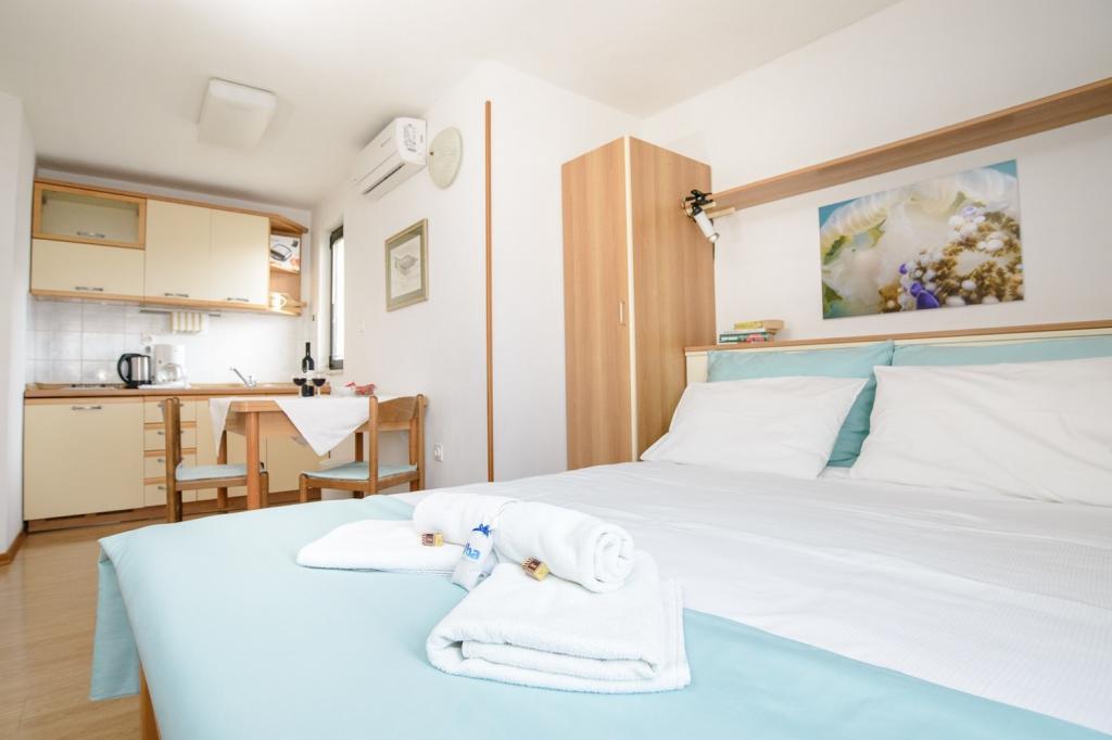 Read more Accommodation unitsImportant note! Daily prices are expressed on the basis of a stay of 6 days or more. For a shorter stay, the surcharge is: 1 night + 30%; 2-3 nights + 15% 4-5 nights + 8% Extra bed is charged + €15 Discount for longer stay and smaller number of people in pre-season and post-season depending on the number of days and people (special offer). Advance payment 30% Check-in from 15:00 hours; check-out by 10:00 a.m