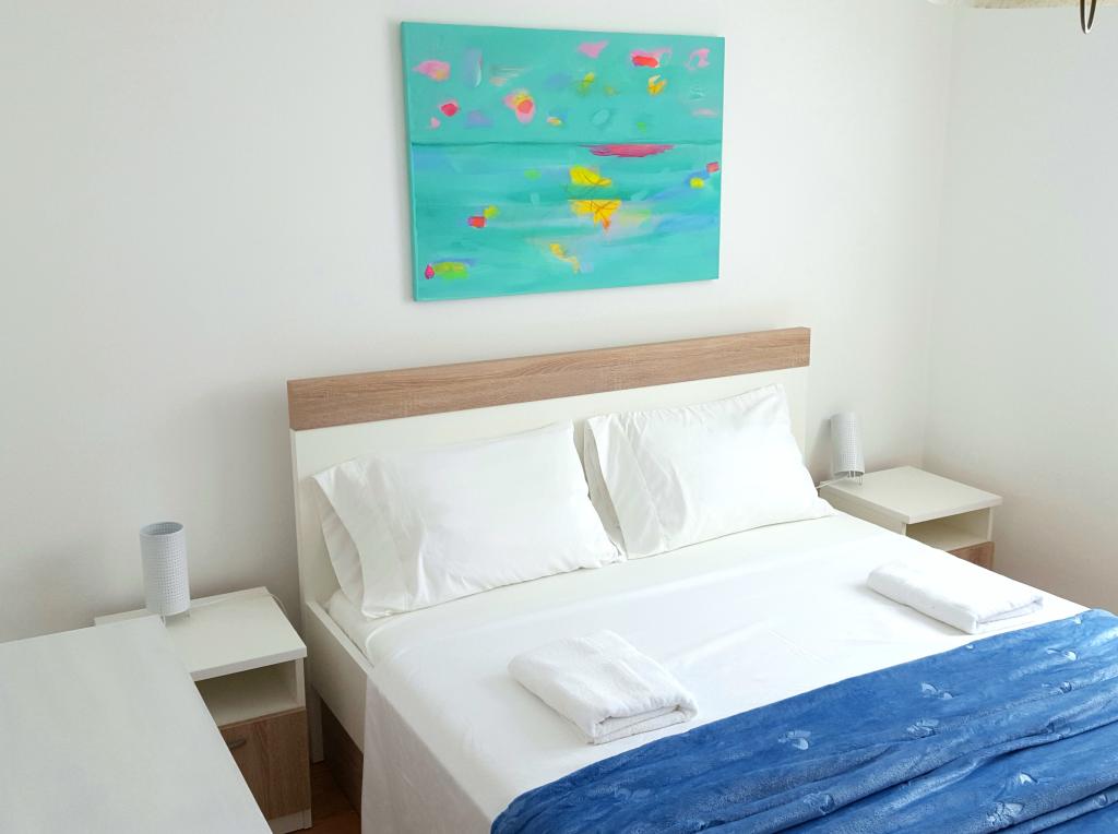All apartments are located in a quiet and safe street and are equipped with private free parking, comfortable terraces, air conditioning, wi-fi, kitchens, bedrooms, towels, bed linen and everything you need for a pleasant and relaxing vacation. The facility is located about 10 minutes' walk from the city center and the first beach. The ideal time of arrival is 13-15h. Departure is until 10 am. Reservation; advance payment in the amount of 100eu. The rest is paid in cash on the day of arrival. The prices are for 2nd person, each additional person can pay an extra charge of 30eu. Pets are welcome with an extra charge of 15 euros \\1. night.