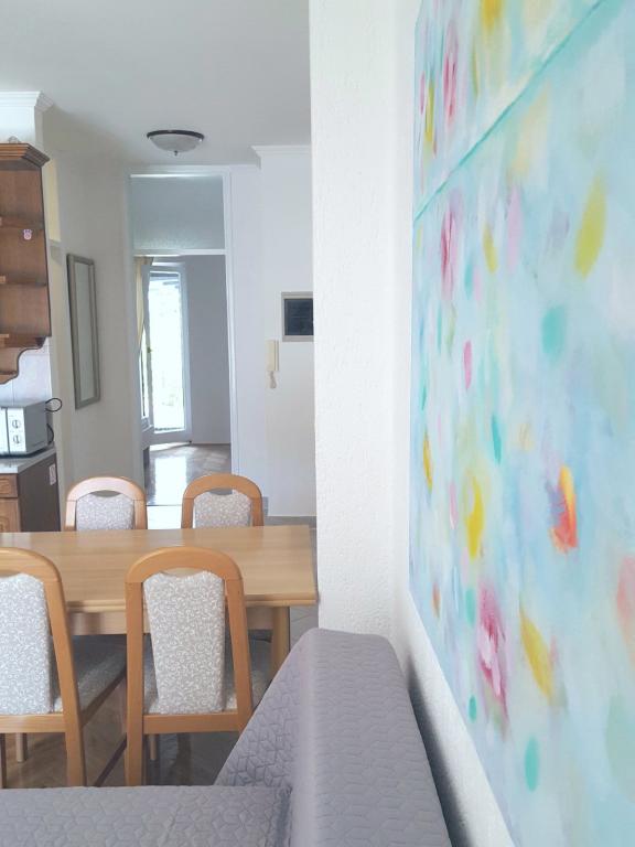 Everything was as it should be. The description of the apartment corresponds to the ad. It has a quiet environment, comfort level, I recommend for a quiet and carefree vacation. The equipment in the apartment is new, the building is clean, they take care of bed linen and fresh towels. the air conditioning serves its purpose, the locals are very friendly, always available if you need any help. They even served us sweets. I highly recommend it.