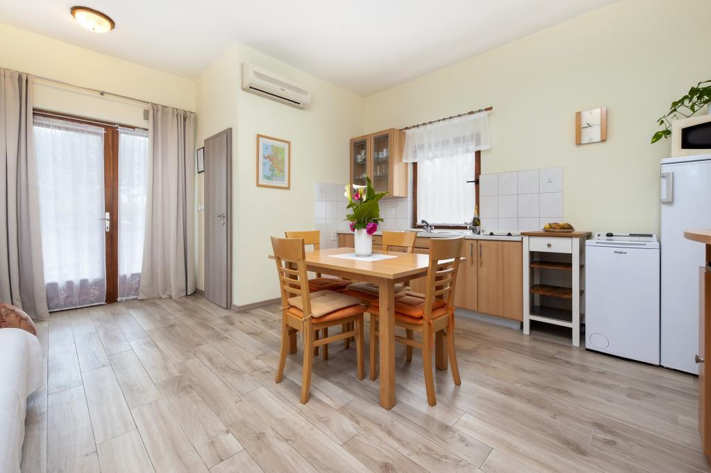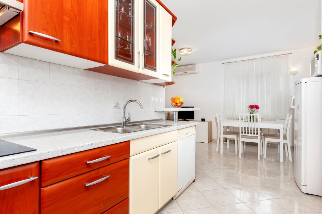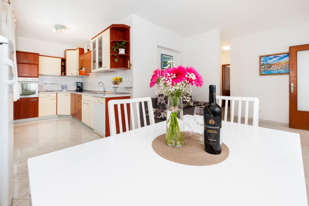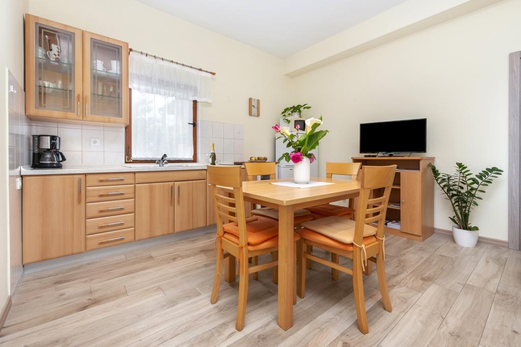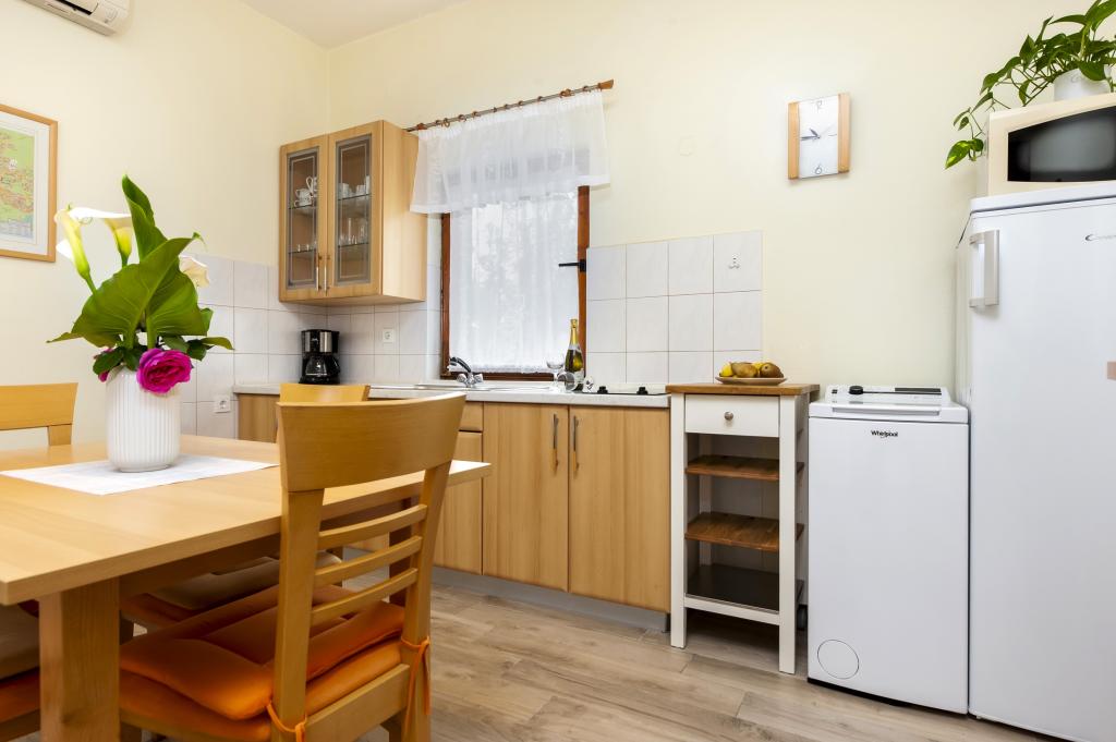 Baby cot and high chair on request free of charge. The apartments are fully equipped, air-conditioned. The price includes bed linen, towels for use in the apartment, use of air conditioning, WIFI, one parking space per apartment in the yard. Change of bed linen and towels by arrangement. Washing machine in apartments A2+1 SANDRA and A4+1 SANDRA Dishwasher in apartment A4+1 SANDRA