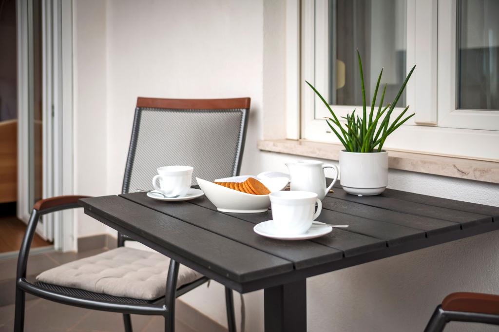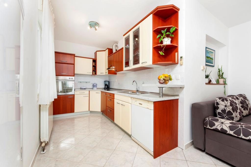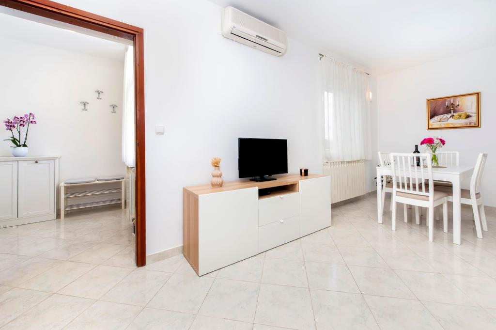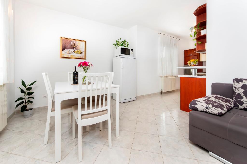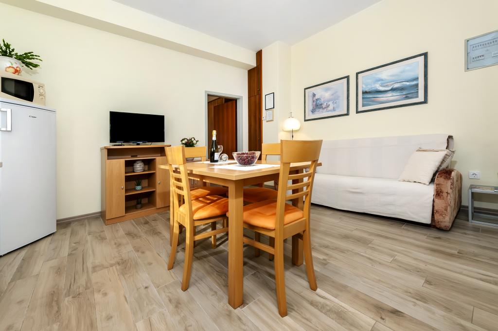 Baby cot and high chair on request free of charge. The apartments are fully equipped, air-conditioned. The price includes bed linen, towels for use in the apartment, use of air conditioning, WIFI, one parking space per apartment in the yard. Change of bed linen and towels by arrangement. Washing machine in apartments A2+1 SANDRA and A4+1 SANDRA Dishwasher in apartment A4+1 SANDRA