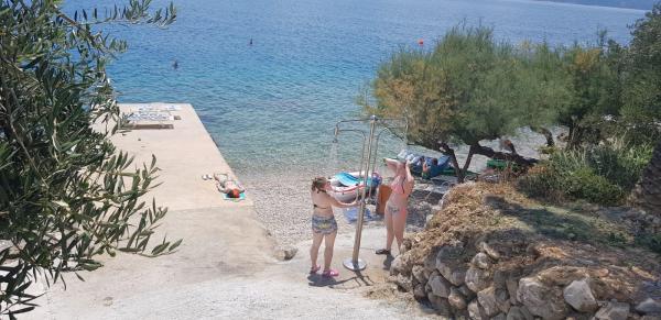 A very pleasant two weeks, with always helpful and smiling hosts. The view from the terrace is breathtaking. Exclusive access to the beach, plus sunbeds and a surfboard. Sunbeds are also available on the terrace. The best accommodation we've stayed in on the Croatian coast, the kids loved it too. We'll definitely be back. Best regards, Monika.