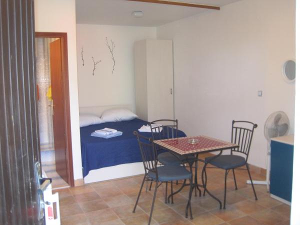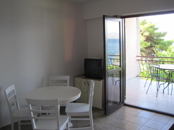 Ruskamen is a quiet tourist resort located 6 km south of Omis, 30 km from Split and 30 km from Makarska. The house with 4 apartments is located directly on the pebble beach. Parking is secured and is located 50 m above the house. Access is enabled by stairs. An ideal place for peace and relaxation. Especially suitable for families with small children. The apartments are fully equipped. Studio apartments (aib) are located on the ground floor and have access to a large terrace with deckchairs, a garden table and a barbecue. Apartments on the first floor (A4 and A2 1) have a large balcony overlooking the sea and the island of Brac. The shopping center, the cafe, the restaurant and the hotel. is 50 m away from the apartment.