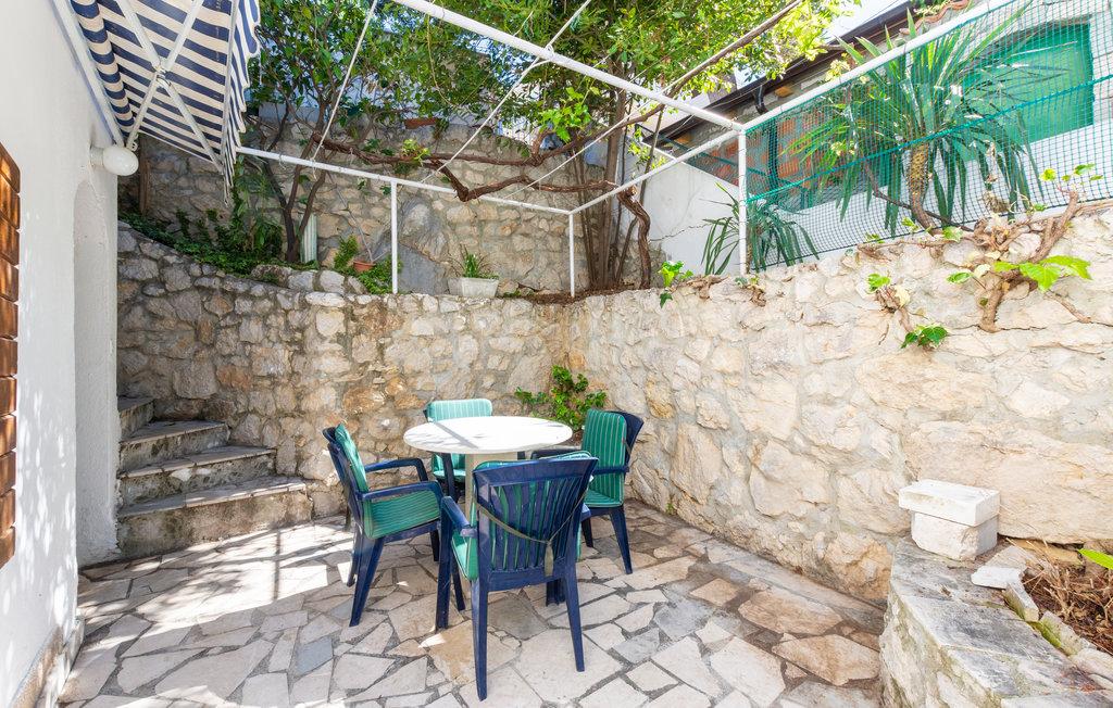 Sanja Apartments are located in the small village Ruskamen, located on the coast of the Riviera Omis. The house is located in a very quiet neighborhood, surrounded by pine trees and grape vines. Guests Sanja apartments are mostly parents with children, so the calm and quiet atmosphere. Just 20 meters below the house is a pebble beach, which is reached by stairs. In the courtyard barbecue where guests can prepare some of the local specialties and enjoy the view of the Adriatic Sea. Parking for guests is located 30 meters above the house. The center with supermarket, cafes and restaurants is only 350 meters from the house. City center can be reached promenade. We recommend visit the nearby town situated 6 kilometers and the city of Split, located 30 kilometers.