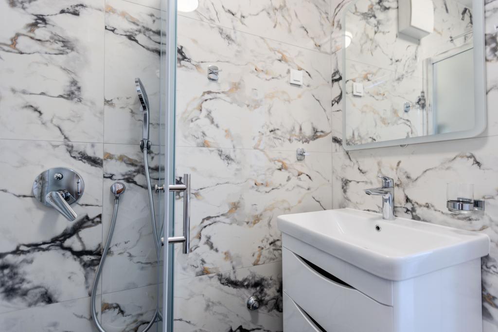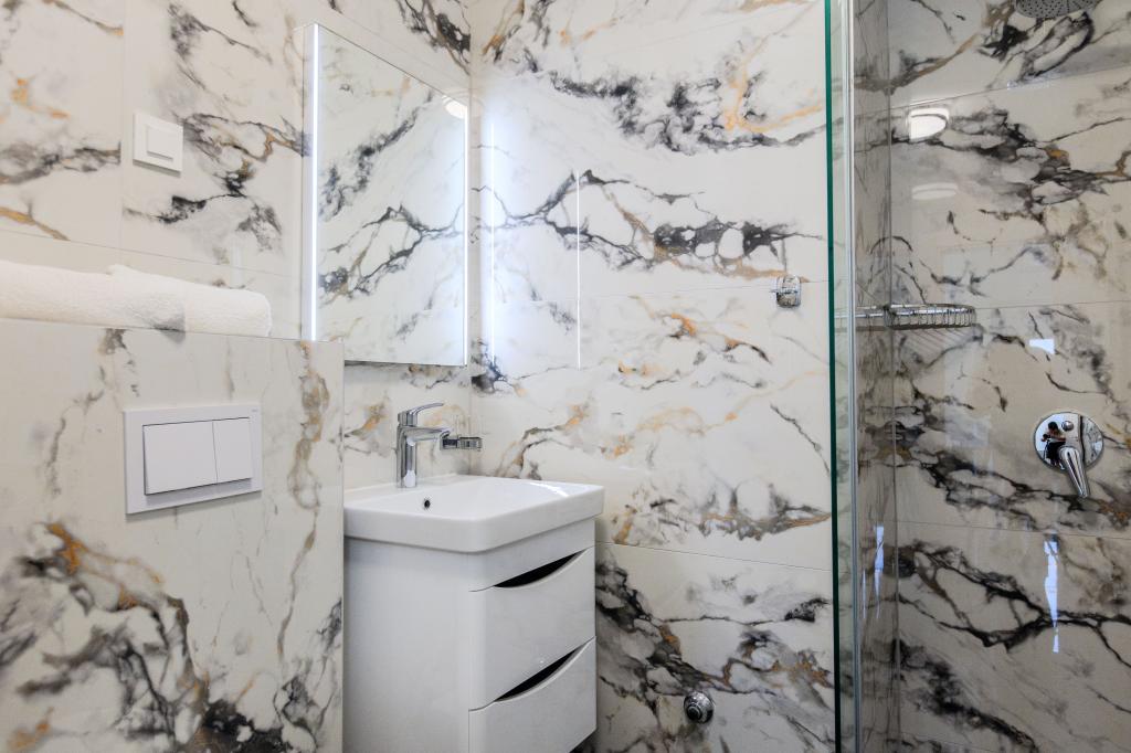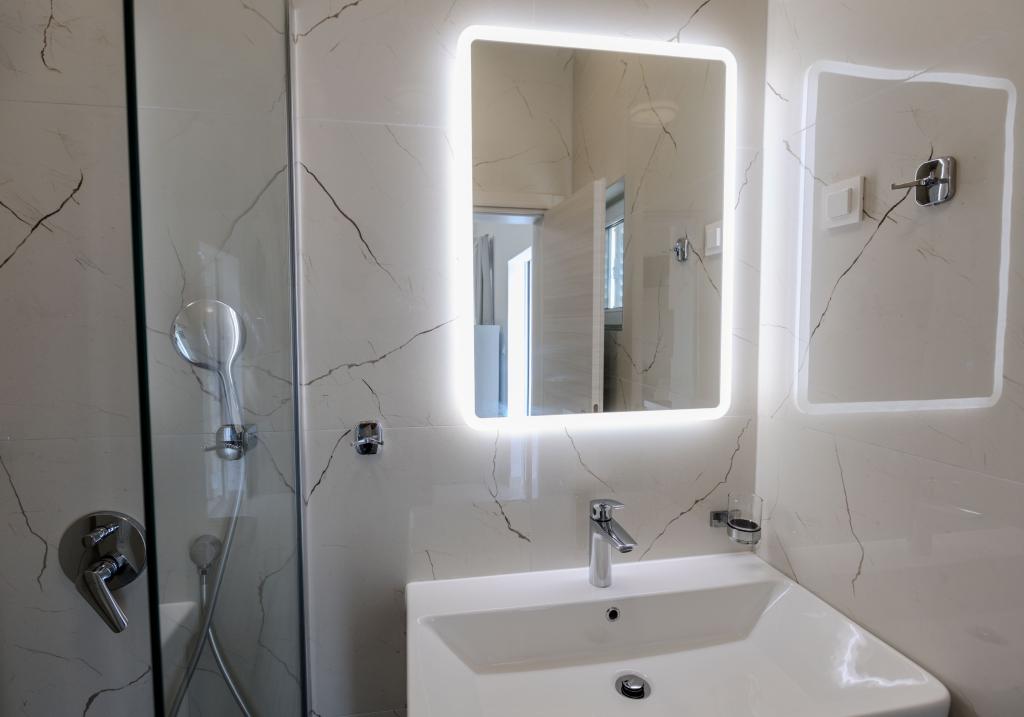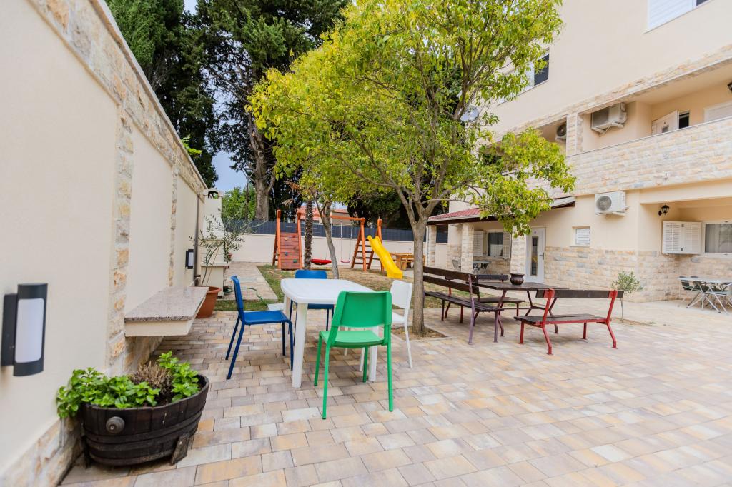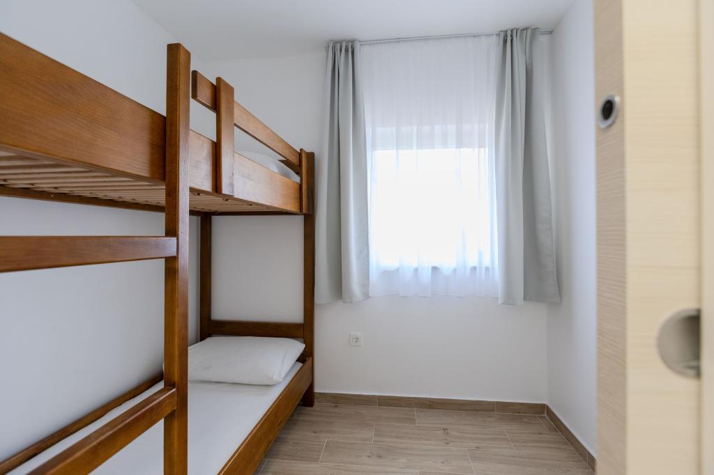 The apartment is clean and large and meets all needs. The rooms are airy, but the apartment also has an air conditioner that works great. The apartment has a lot of sockets and everything you need (e.g. dishes, etc.). The apartment has a nice and spacious balcony with a nice view, a table and many chairs. In the room, there are nightstands and small lamps that turn off within reach above the bed. The bathroom has a nice mirror and is quite large. The location is ideal. Market, beach, bakery, cafe and ice cream stand are located within 5 minutes from the apartment. The door is secure and the apartment seems secure too.