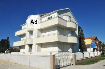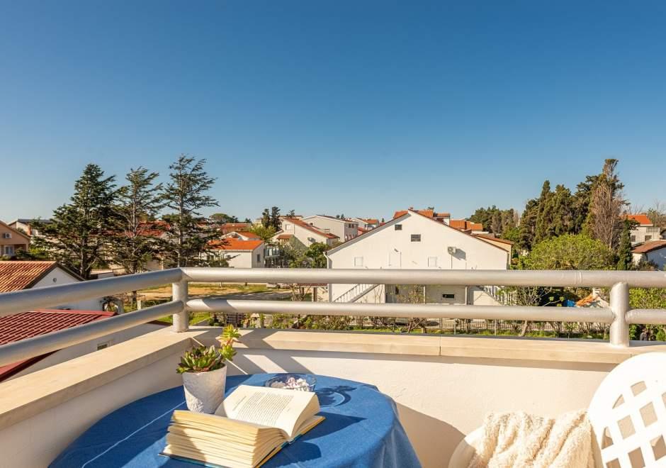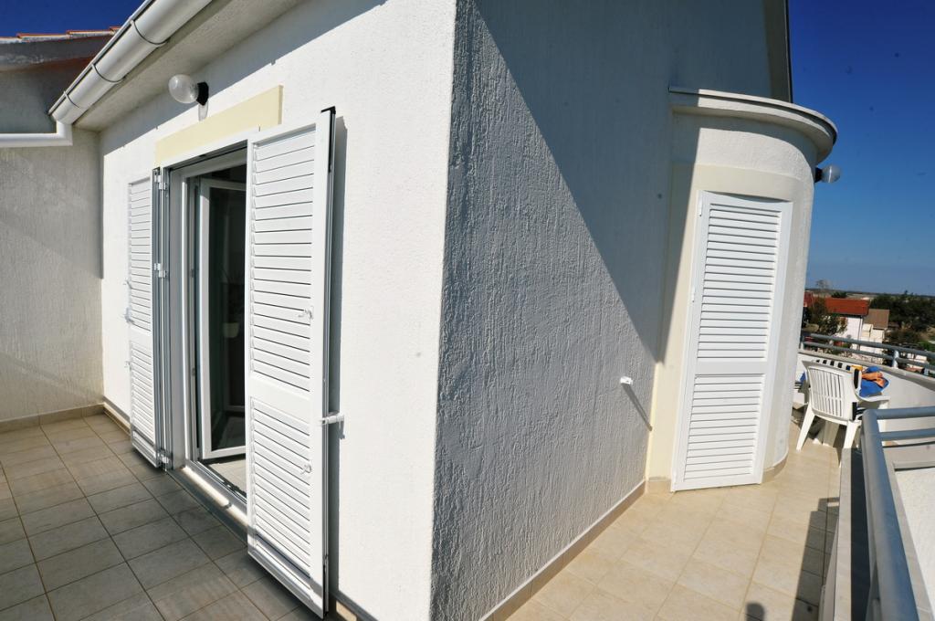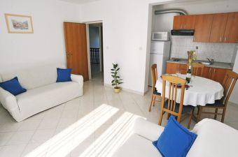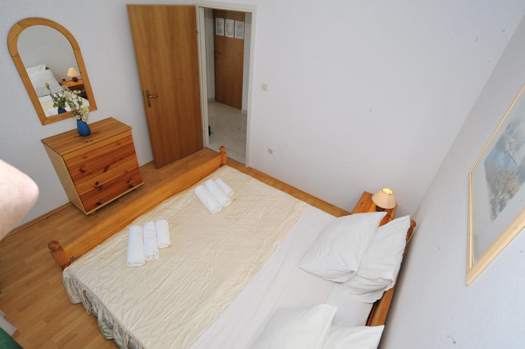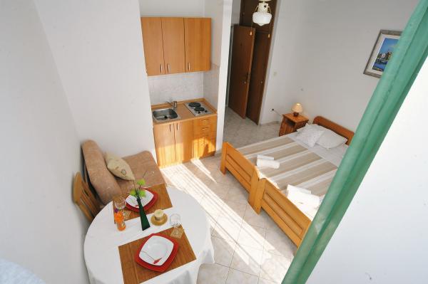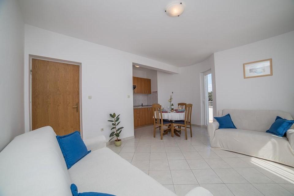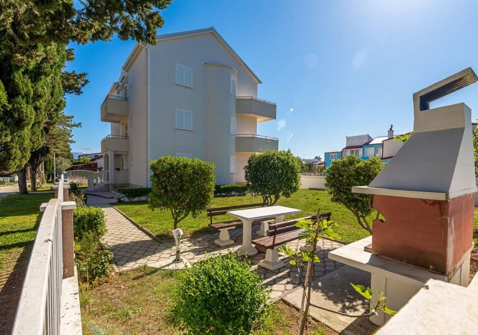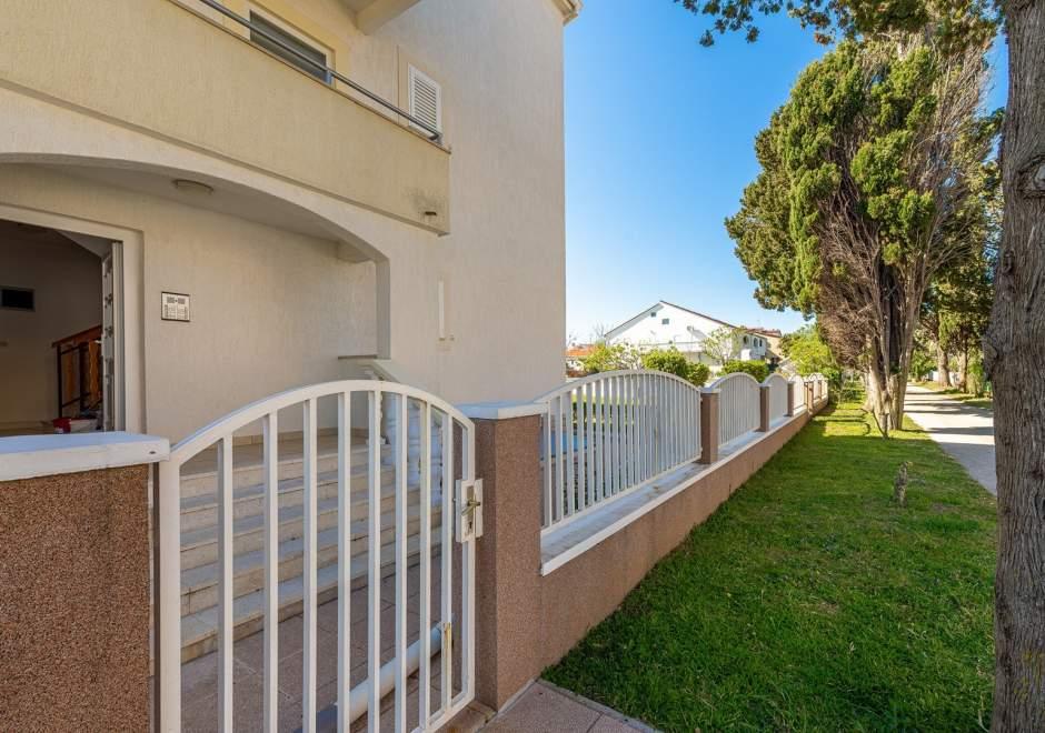 Modernly equipped house with 9 accommodation units: 6 apartments with one bedroom and a living room with two extra pull-out beds, a two-seater and a three-seater, as well as an equipped kitchen, a bathroom with a shower, and a large balcony with a table and chairs. There is a large wardrobe in the hallway. 3 studios are designed for two people, they are also fully equipped: bathroom with shower, large wardrobe, kitchen, and a smaller balcony with a table and chairs. All apartments have air conditioning. The house is located 3 minutes' walk from the sea, or 5 minutes' walk to the large sandy beach (Kraljičina plaža).