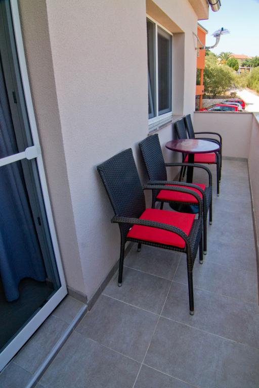 Apartments located in a new building in a quiet street with a beautiful view of the sea, islands and Velebit. Each apartment has a separate entrance. The apartments are fully equipped for a pleasant summer vacation and have one parking space in the yard. They are equipped with a TV set and a wireless network (Wi-Fi). Bed linen and bathroom towels are included in the rental price. Guaranteed use of the barbecue in the yard. Apartment 4, air-conditioned, 45 m2, located on the first floor, has a double bedroom and a children's bedroom with two beds each. The balcony is 6 m2 and the terrace 9 m2. The kitchen connected to the dining room is equipped with basic kitchen appliances, cooking and serving utensils. Apartment 2+2, air-conditioned, surface 45 m2, is located on the ground floor and has a double bedroom and the possibility of a double bed in the living room. Terrace of 9 m2. The kitchen connected to the dining room is equipped with basic kitchen appliances, cooking and serving utensils. Pets are not allowed