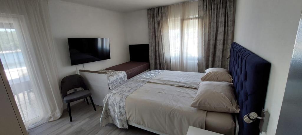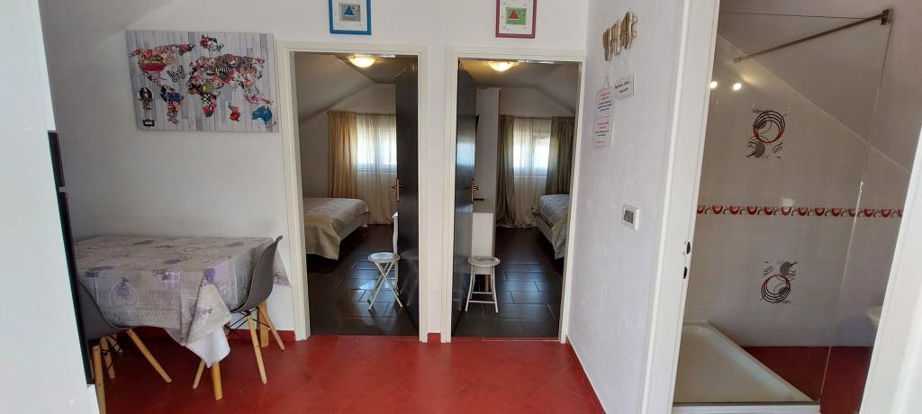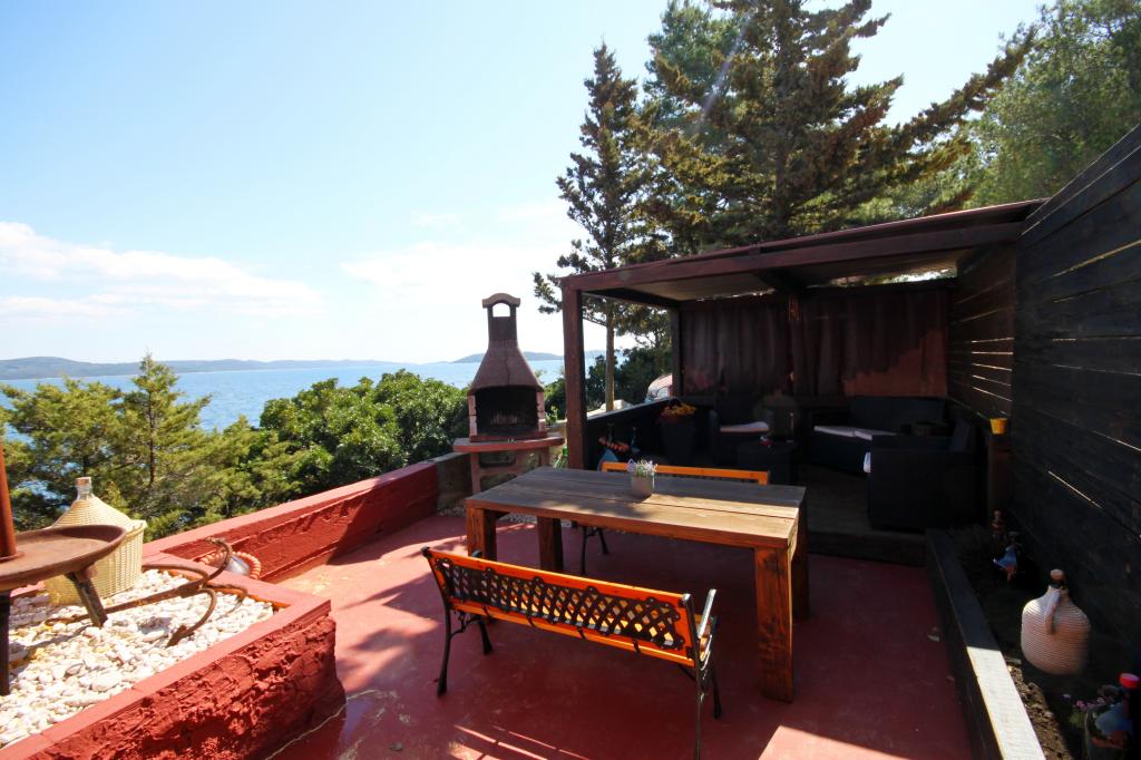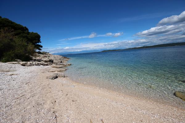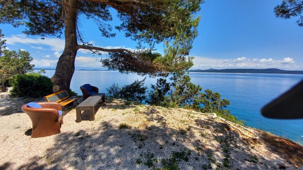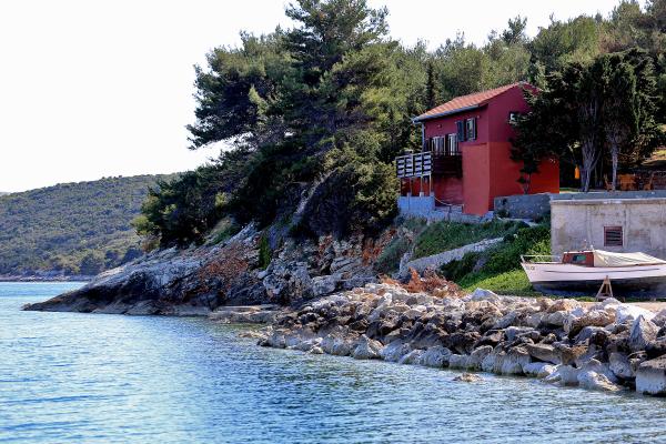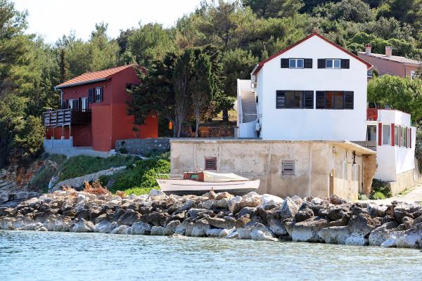 Apartments Kolić in Savar on Dugi otok are located in the immediate vicinity of the sea. Savar is an ideal place for a relaxing holiday with family or friends. We offer accommodation in a total of 3 apartments with a terrace and a beautiful view of the sea. In a separate red house there is a studio apartment for 2 people, equipped for a pleasant stay. The other 2 apartments are located in the white house next door. One on the first floor and the other in the attic. both apartments have two bedrooms, a kitchen with a dining room and a bathroom. Each apartment in the white house can comfortably accommodate 4 to 5 people, and if necessary, we can also accommodate 6 people. The special feature of our apartments is that they are right next to the sea and the beach is right in front of the house! The yard covers over 1000 m2 and is surrounded by pine trees, which give us thick shade. On hot, summer days, our guests rest on a hammock between two pine trees, and they can also enjoy it on the deck chairs by the sea or in the shade of the pine trees.