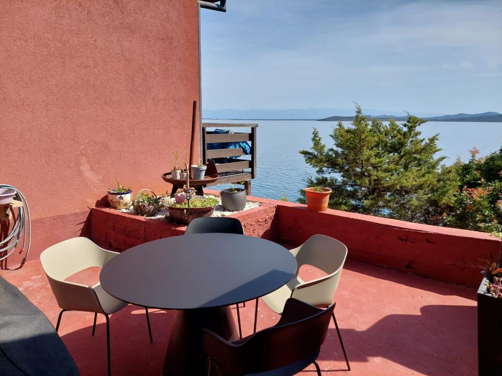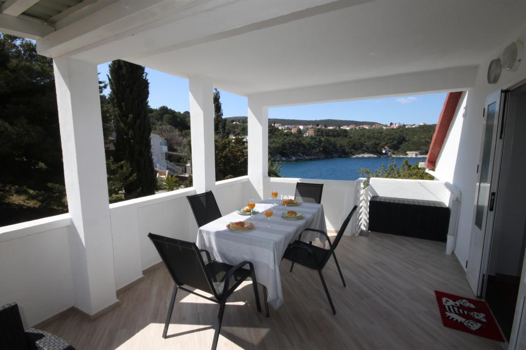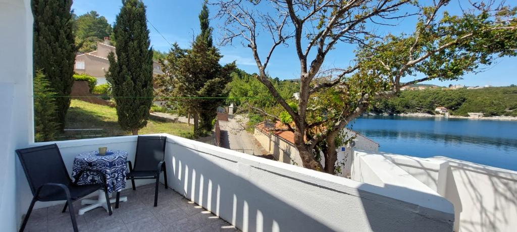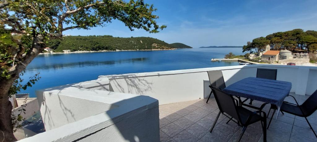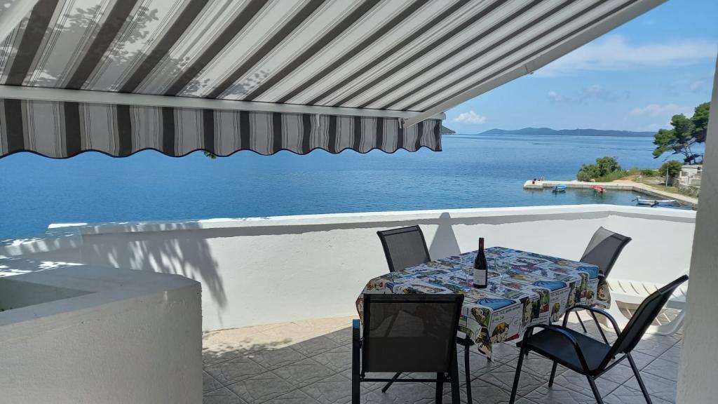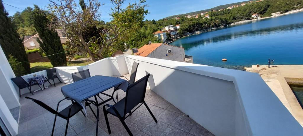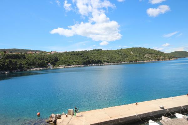 The location of the apartment is a dream! Right on the sea, super quiet and you have a fantastic view from the balcony! The landlord lives downstairs in the house doesn't bother you at all! Super nice, helpful and occasionally surprises with a BBQ. We really enjoyed our time there and would go back in a heartbeat. There were only two of us in the apartment, couple with children also okay.. You have to go to other places for shopping and eating out, but you already know that beforehand.