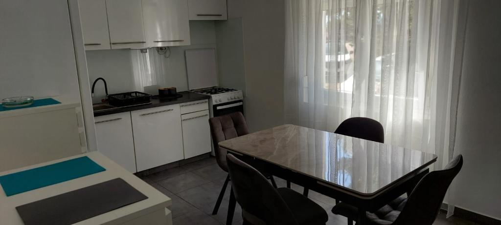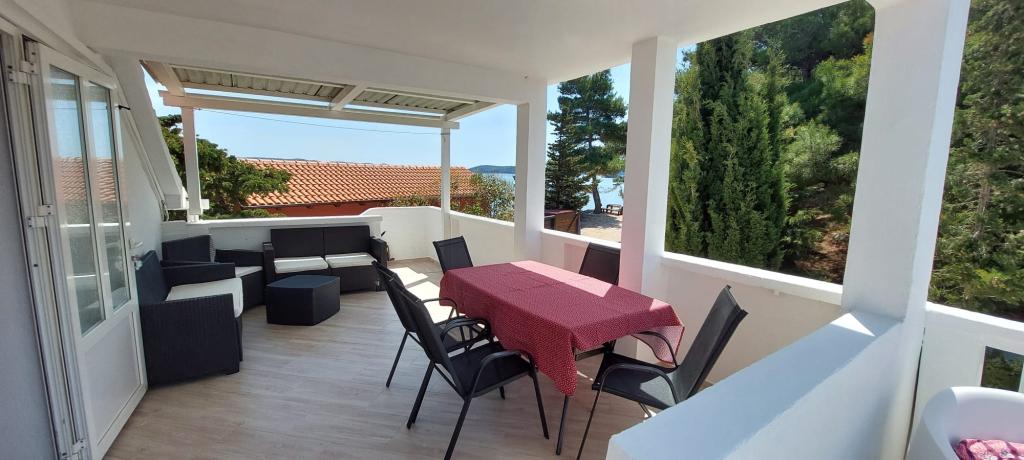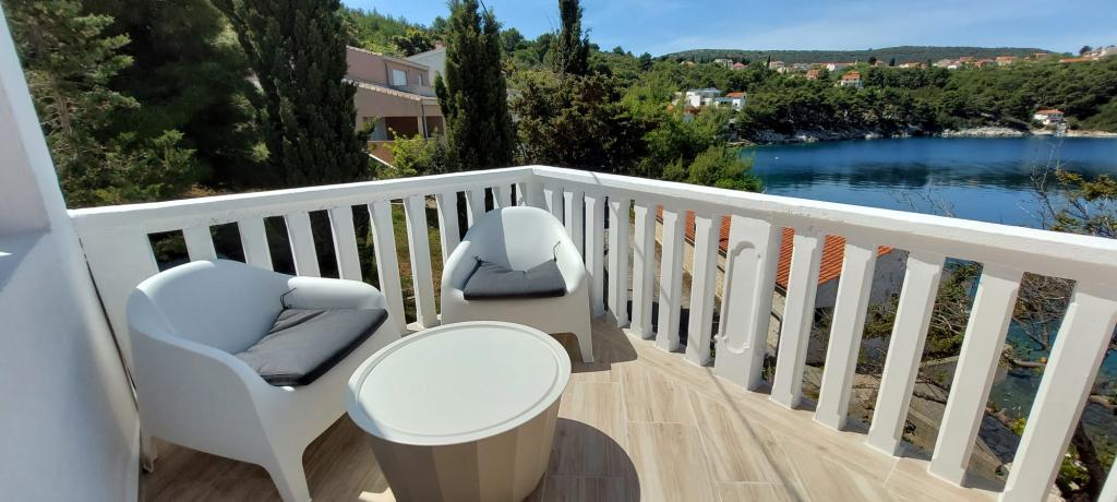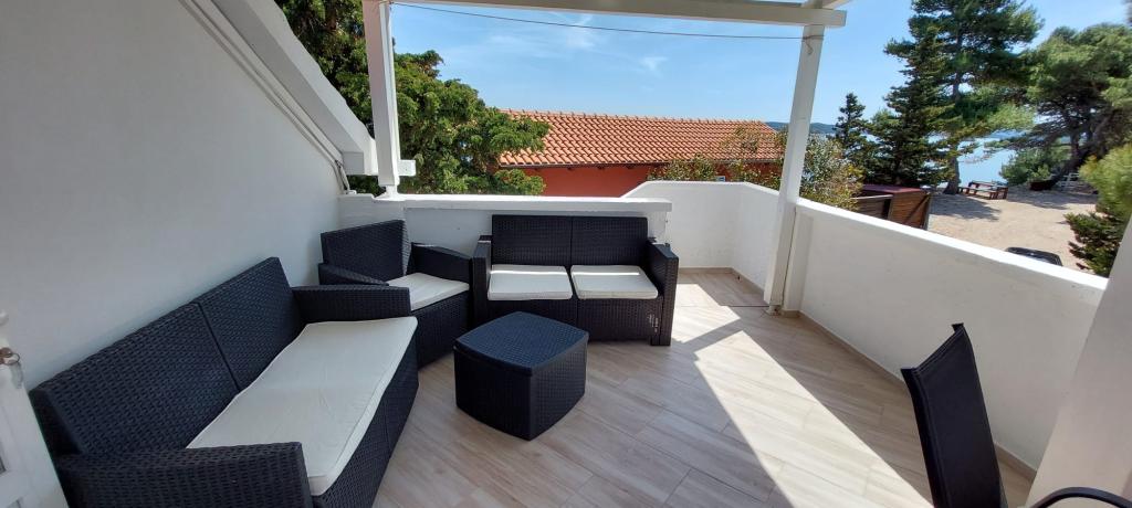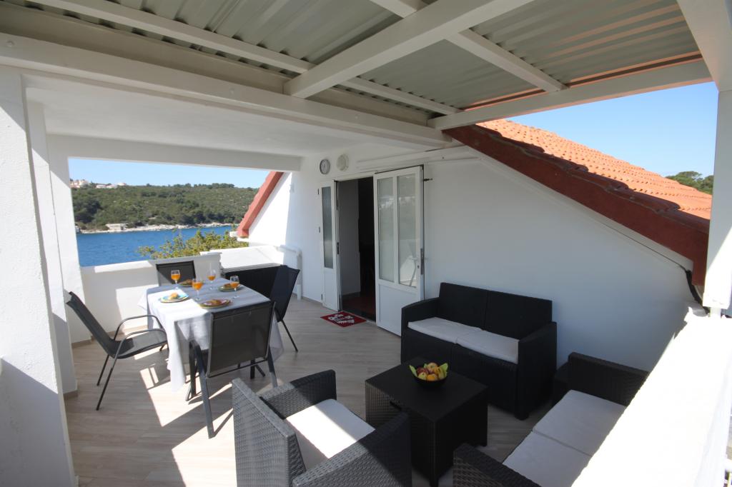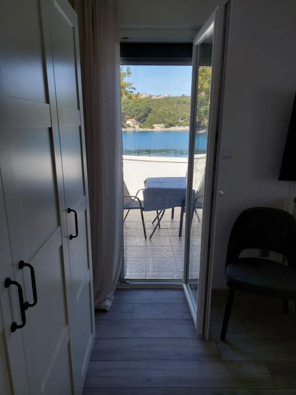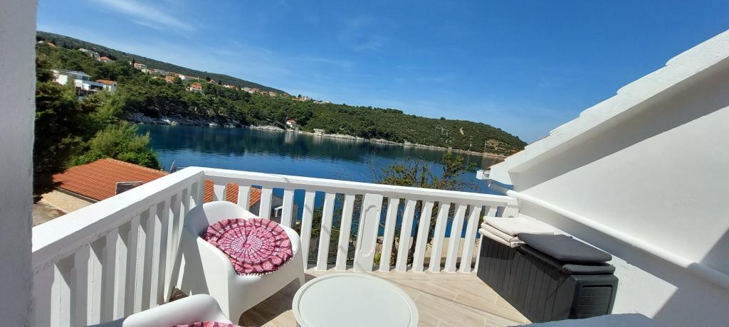 The location of the apartment is a dream! Right on the sea, super quiet and you have a fantastic view from the balcony! The landlord lives downstairs in the house doesn't bother you at all! Super nice, helpful and occasionally surprises with a BBQ. We really enjoyed our time there and would go back in a heartbeat. There were only two of us in the apartment, couple with children also okay.. You have to go to other places for shopping and eating out, but you already know that beforehand.