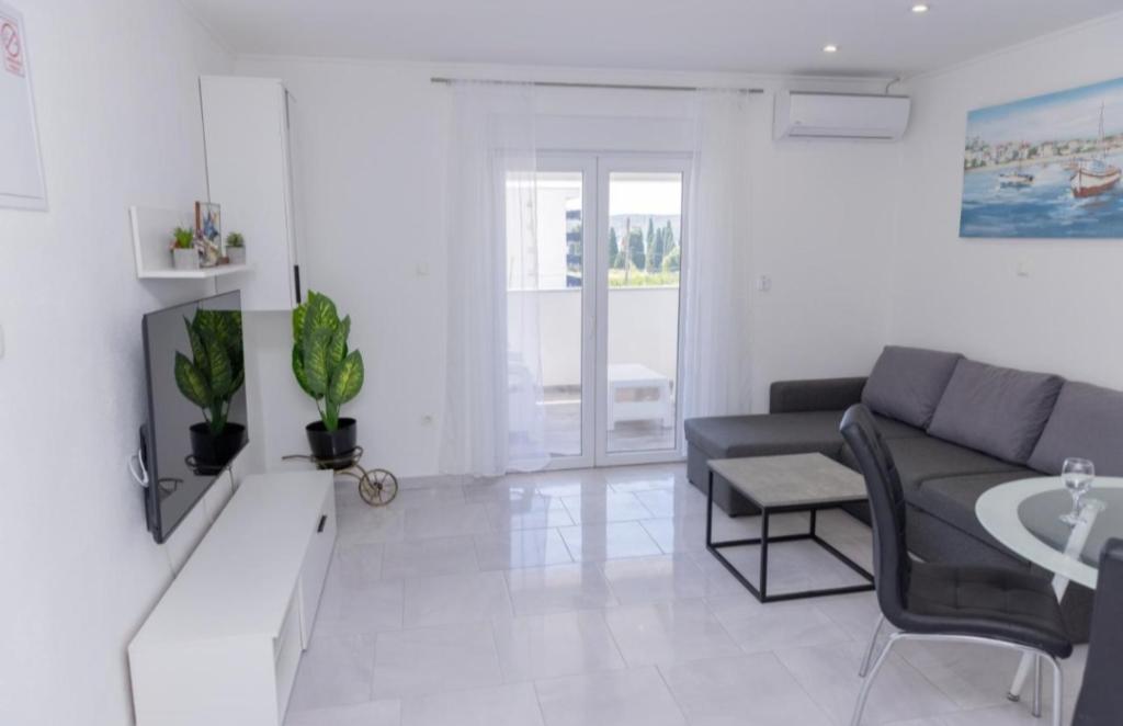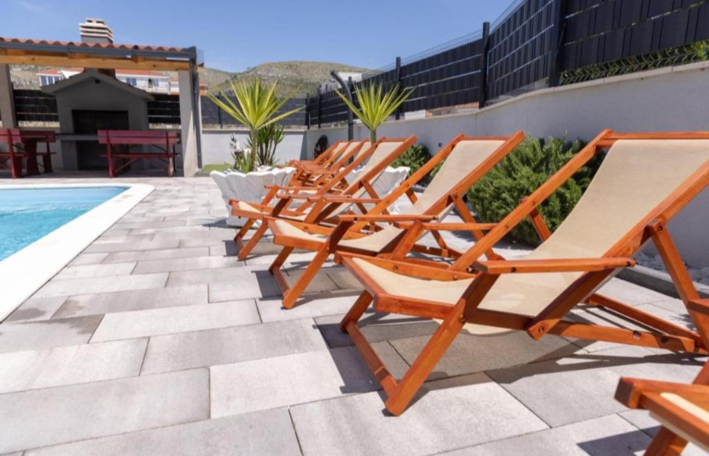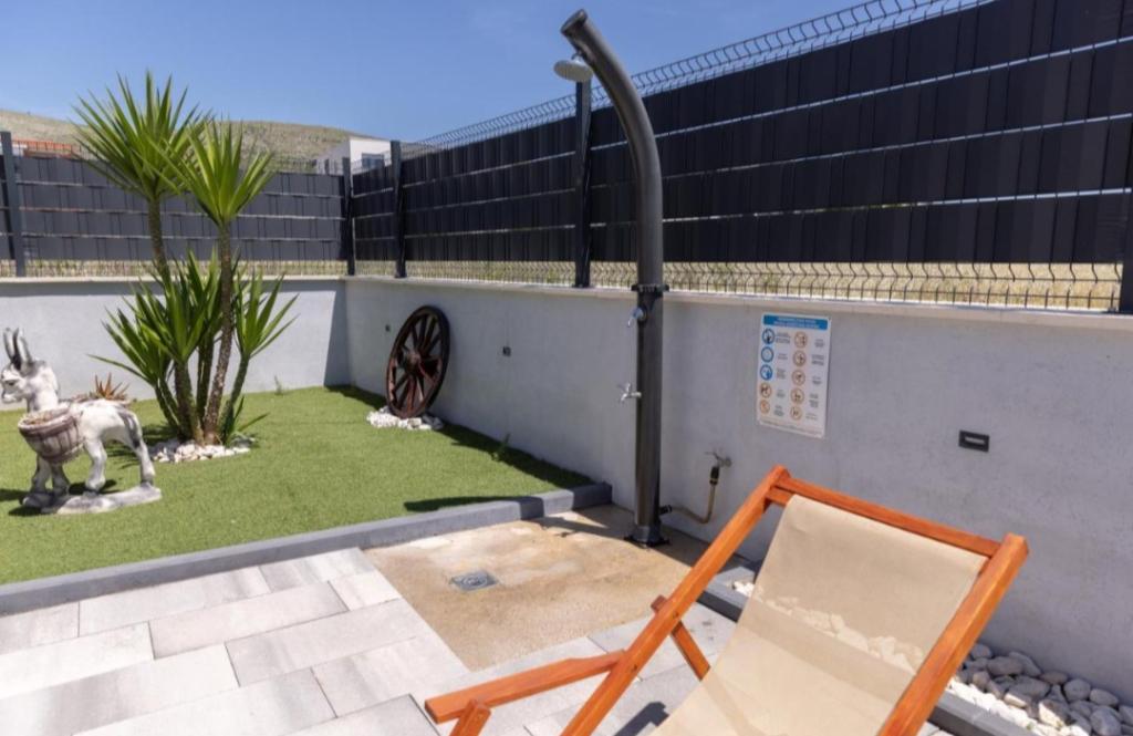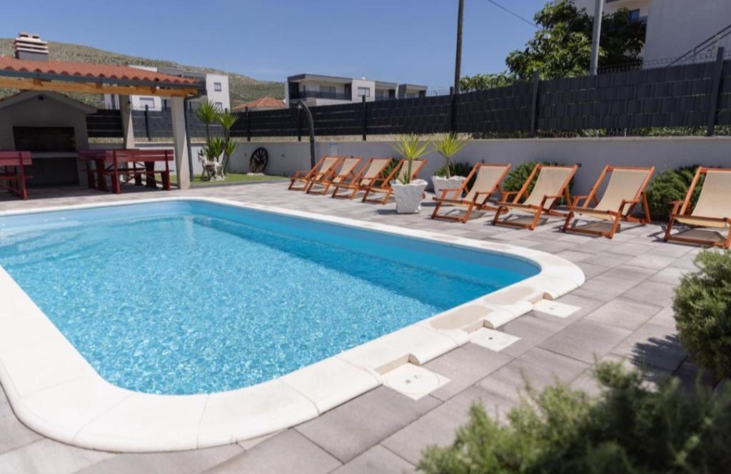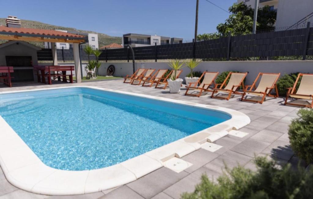 Newly furnished Villa in Seget Donji. Contains 2 apartments of 65 m2 each. Each apartment has one bathroom, two bedrooms with double beds. Each apartment has a spacious living room. The villa has a garden of 168 square meters, a swimming pool of 30 square meters, an outdoor grill, deckchairs for resting, fire polo goals for the pool. Both apartments have a view of the pool and the sea. Marina Baotić is 100 meters away. The shop Tommy is 50 meters away, inside which there is a shop selling fresh bread, pastries and fresh meat. Restaurant Barba is 50 meters away, as well as Caffe Bar and Pharmacy. The villa is located on the border of Trogir and Seget Donjeg.