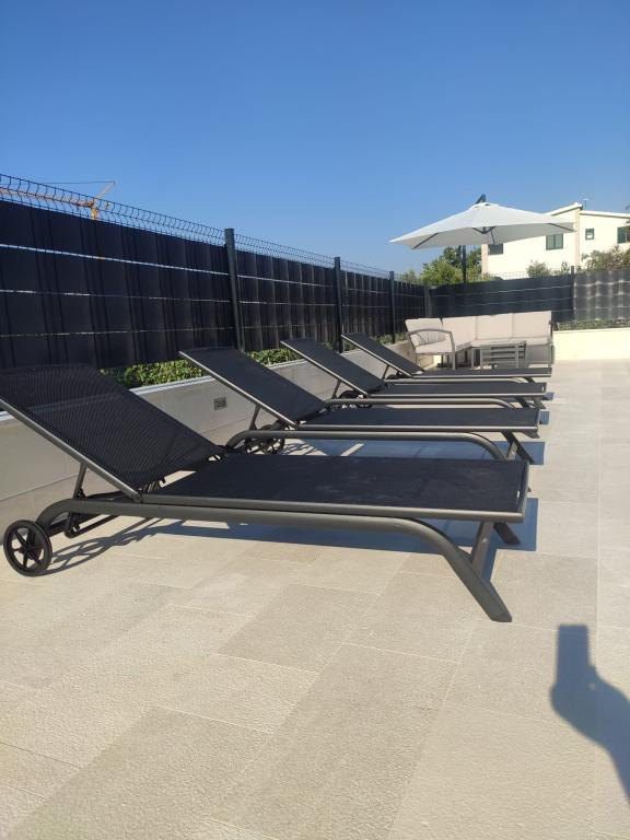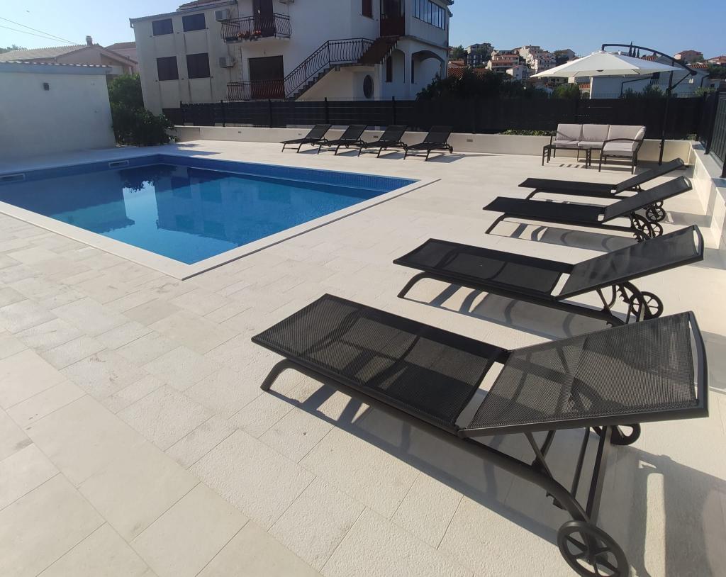 Newly renovated apartments with a swimming pool measuring 9x5 meters, a spacious sunbathing area with deckchairs and corner furniture, there is also a toilet in the swimming pool, in the beautiful Dalmatian town of Seget Vranjica, just a 5-minute walk from the beach. Within 200 m there are shops, restaurants, church, sports grounds, etc. The ancient UNESCO city of Trogir is only 4 km away from us, which is connected by the Seget Vranjica - Trogir ferry line, the airport is 10 km away, and the city of Split is 30 km away. km.
