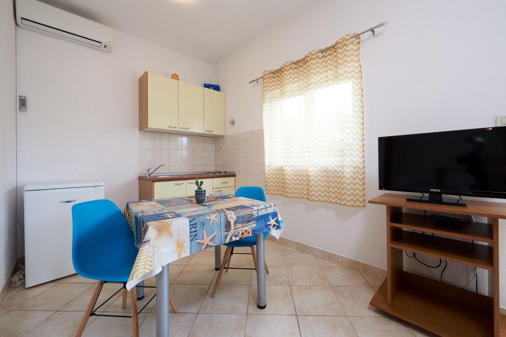 Fully furnished apartments in the center of a small Dalmatian village, Seget Vranjice, just 30m from the beach and only 5 km from Trogir (UNESCO-protected city) are an ideal choice for families with children. Studio apartments are on the ground floor, A8 and A4 (a) are on the first floor while A4 (b) is on the second floor. Just a 5-minute walk away there are shops and several restaurants where you can enjoy the best Dalmatian specialties. Sports facilities for various activities are also close by, just a 10-minute walk away. If you want to visit Trogir, Split or any of the nearby islands, the boat stop is only a few minutes away. In front of the house is a garden where children can play safely. In the courtyard behind the house is a barbecue at your disposal. Parking is also provided for all guests of the apartment.