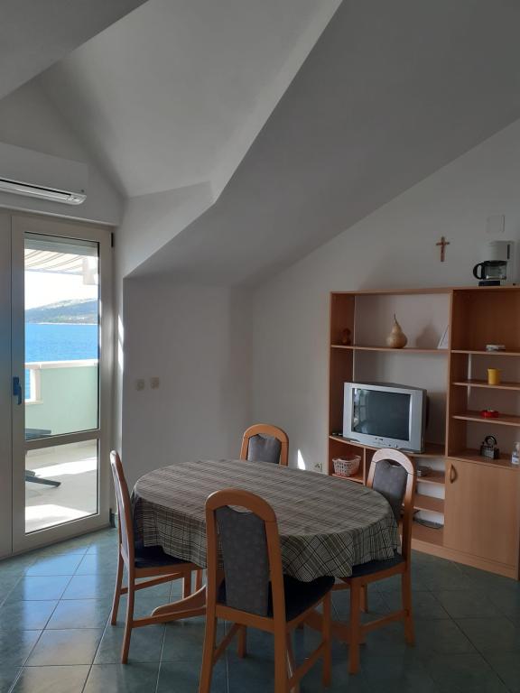 The apartments are located by the sea in a small fishermen village. An ideal choice for a quiet family vacation. The beach is located directly in front of the apartment, and all apartments have a spacious terrace with an unobstructed view of the sea. You can spend the evening hours walking around the beautiful town of Trogir, which is located nearby.