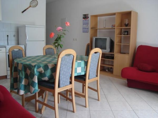 I recommend staying at Dida Apartment. close to an intimate, quiet and rocky beach with many stone (sometimes concrete) terraces. the interiors are renovated, the equipment is functional, very clean in the rooms. the big advantage is the fantastic host. nice and subtle. it is quiet and peaceful. those who want to have fun have restaurants and bars at the nearby Camping. a grocery store is about a 5 minute walk away