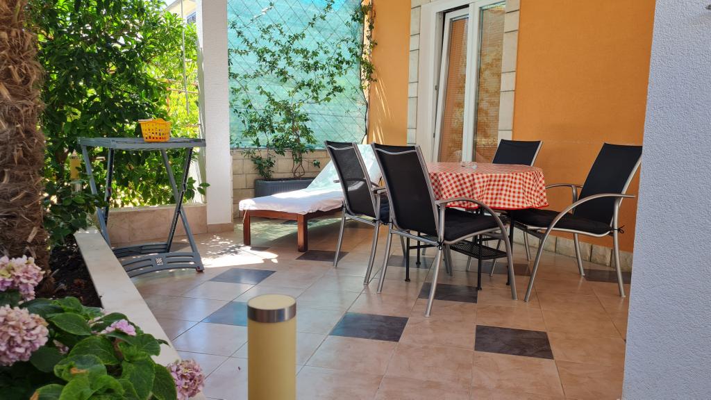 The apartments are located in a quiet place Seget Vranjica near Trogir. They are ideal for a family vacation. The beaches are a five minute walk away. A market, a bakery and a fruit shop and restaurants are also close to the apartments. In the place you can rent a scooter, boat, jet ski, etc.