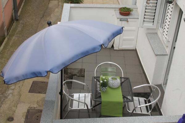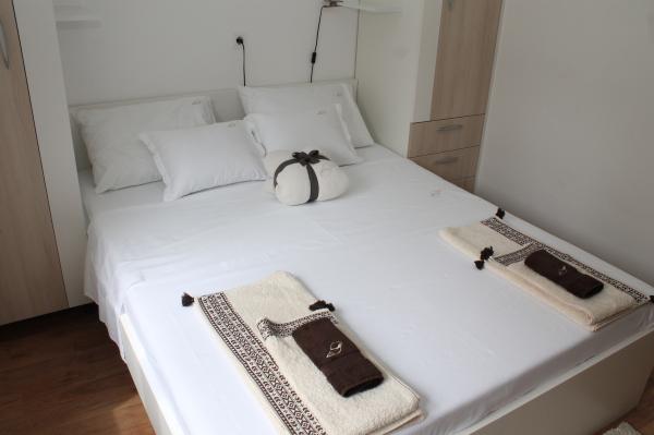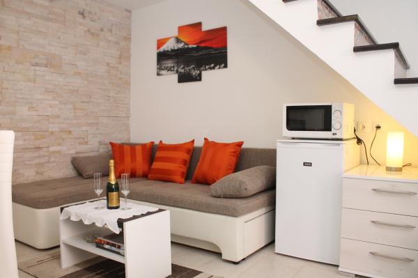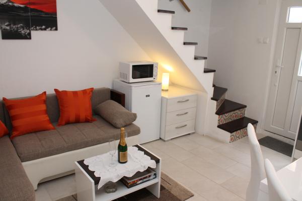We stayed in the apartment this July. Talk to Mrs. Ines perfect. We wrote SMS, described us the way and welcomed us nicely. Apartment exactly as described, although small but beautiful and clean !! Upstairs bedroom where two adults sleep and downstairs in the living room with kitchen sofa bed where two people sleep comfortably. The apartment is in a quiet street but only a few meters from the center and the port. The beautiful sandy beach suitable for small children is a bit farther than mentioned, about 10 minutes by slow walk. (Unfortunately, in the season head to head and therefore we rather borrow deckchairs to have our space. 2 deckchairs and umbrella about 350 CZK) Along the coast a lot of restaurants and beautiful walks in the evening ..