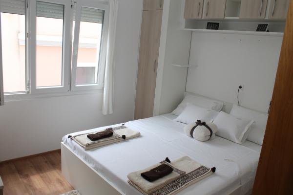Modernly equipped apartment on two floors (detached house in a row) with its own terrace in the old town in a very quiet location and only 50 m away from the center, near supermarkets, post office, exchange offices, cafes and restaurants. distance from the beach 100 m. On the upper floor there is a bedroom with a double bed 160x200, and a bathroom, and on the lower floor there is a living room with a kitchen and a corner sofa that is used as an extra bed 160x200. The apartment is fully equipped with everything for a pleasant holiday. In front of the entrance is a terrace of 10 m2 which can be used as a summer dining room or as a place to relax. Smoking is not allowed in the house Pets are not allowed. For guests is provided parking for one vehicle 5 minutes walk from the apartment. After the guests leave, the apartment is thoroughly disinfected, and all measures are taken to protect guests from infections. In case of need there is medical assistance nearby, available 24 hours.