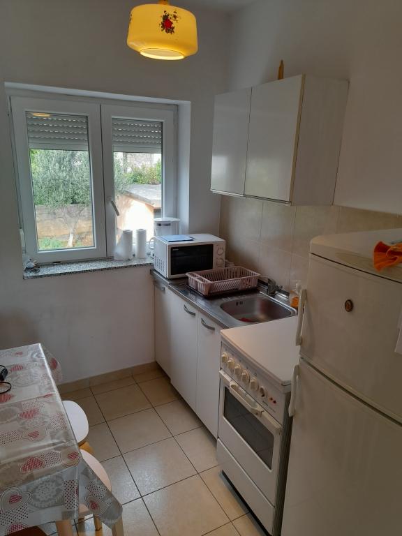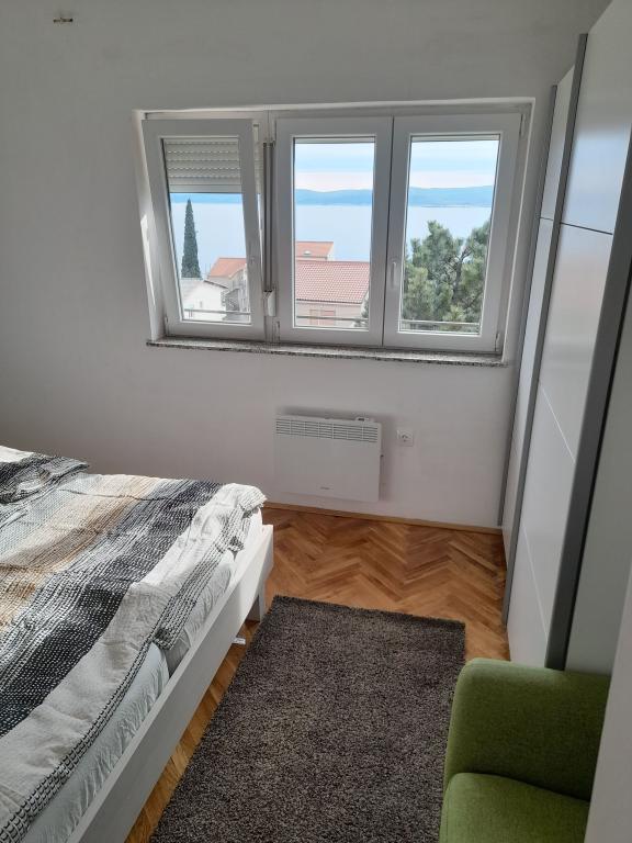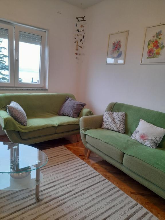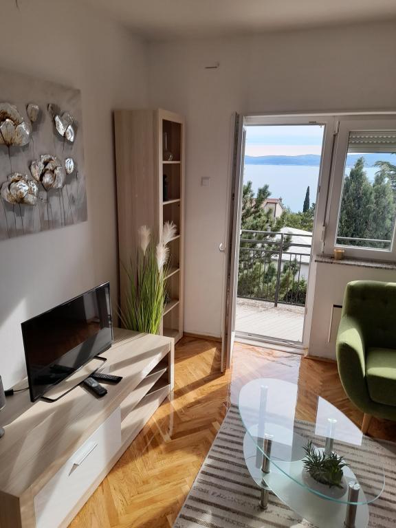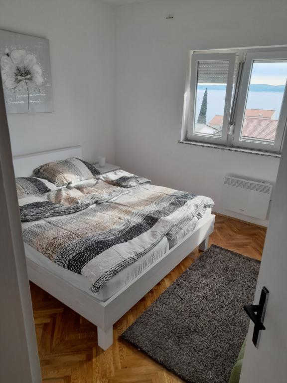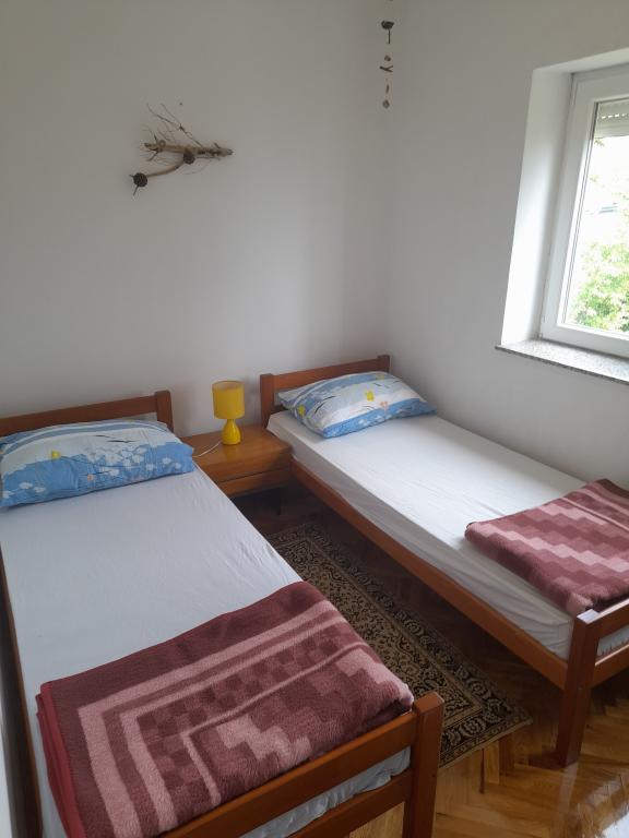 Apartment Maja is located on the second floor of a family house in a quiet part of Selce. Next to the entrance to the apartment is a large covered terrace with a sea view. The apartment also has a spacious balcony with a sea view that can be accessed from the living room. There are also two bedrooms, one with a double bed and one smaller one with two single beds, a bathroom, kitchen and separate toilet, air conditioning and wi-fi. Guests have access to one parking space in the fenced yard in front of the house.